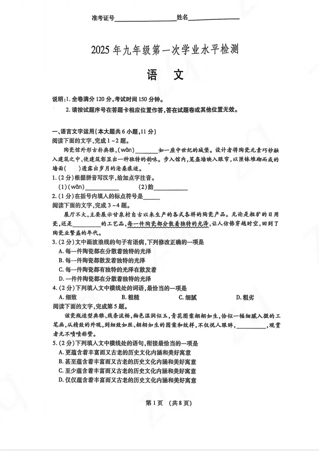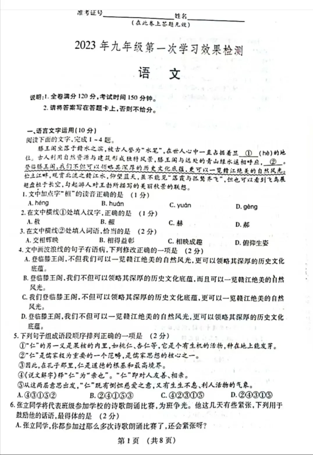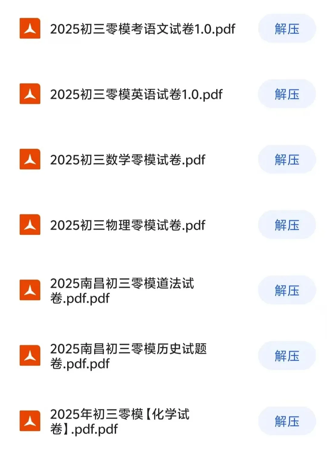 >【免费分享】2023-2025南昌初三零模考试试卷以及答案