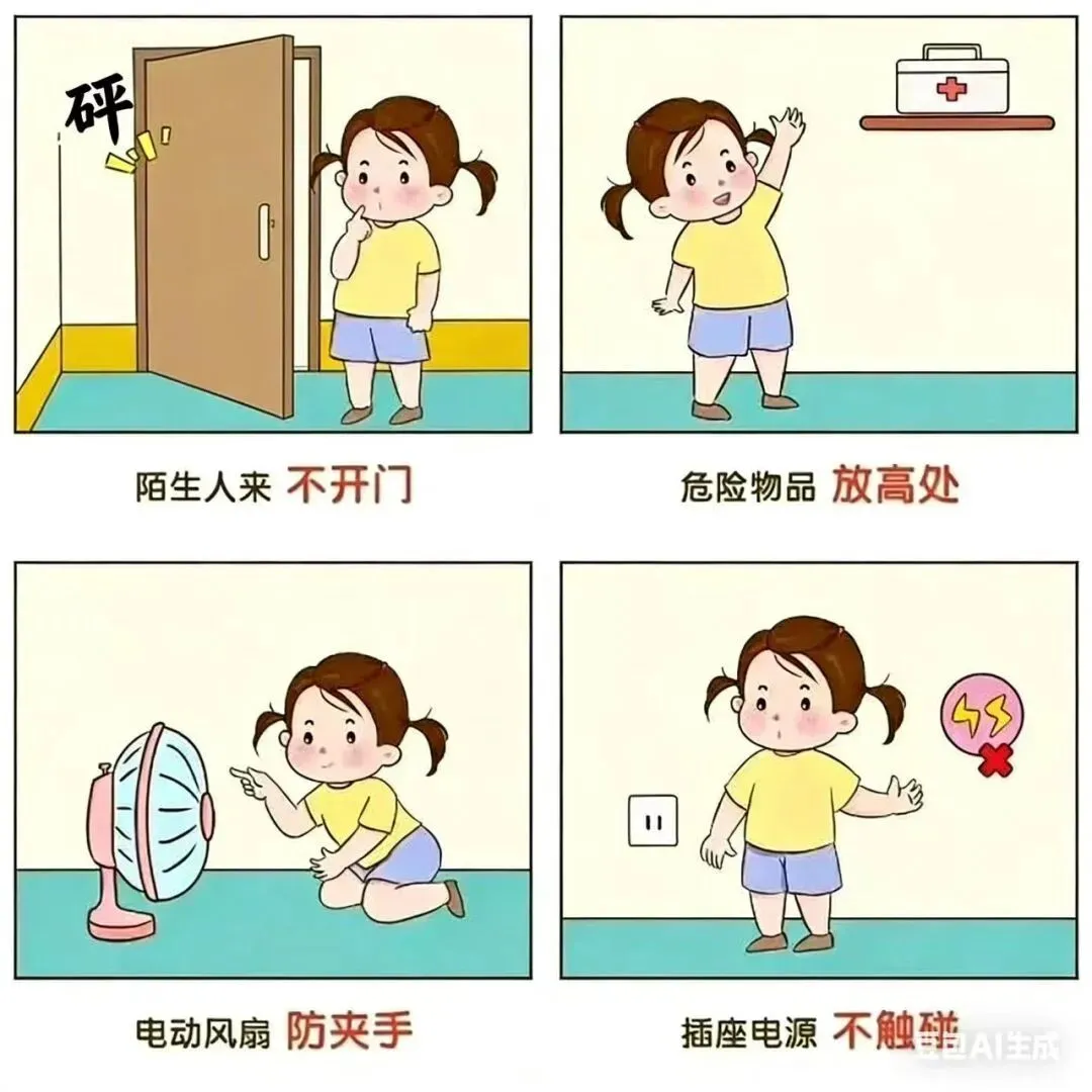 1.教育孩子不玩火、不触碰电器设备,防止发生意外受伤。