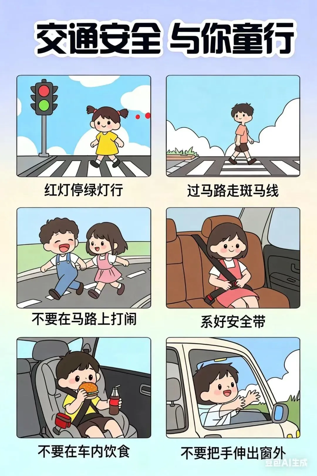 2.行走公路时需注意安全,过马路严格遵循“一停、二看、三通过”原则,走人行横道,不在公路边进行滑板、追逐等危险活动。