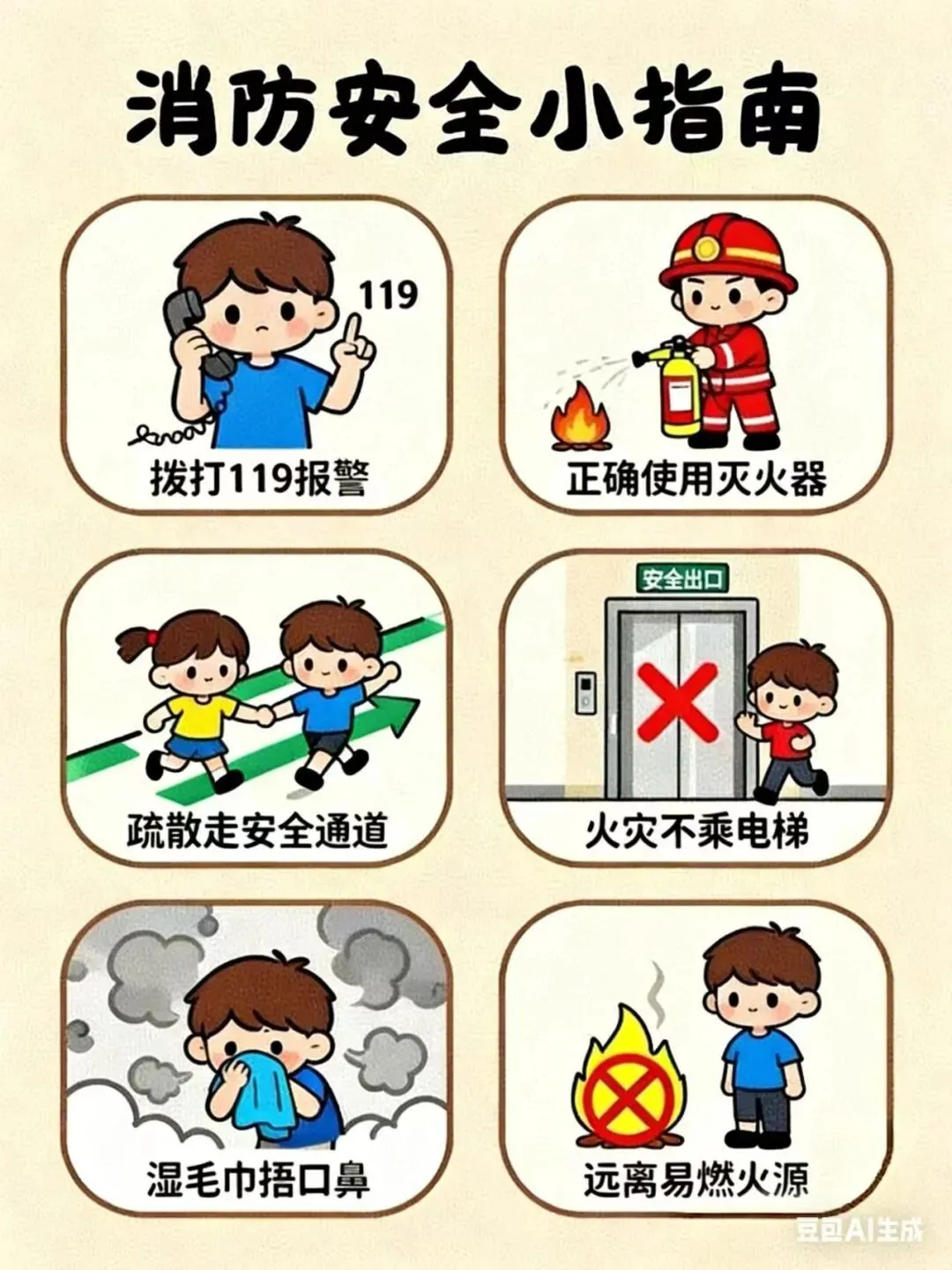 3. 做好居家防火,将打火机、火柴、燃气阀门等危险物品放置在孩子接触不到的位置,严防火灾隐患。