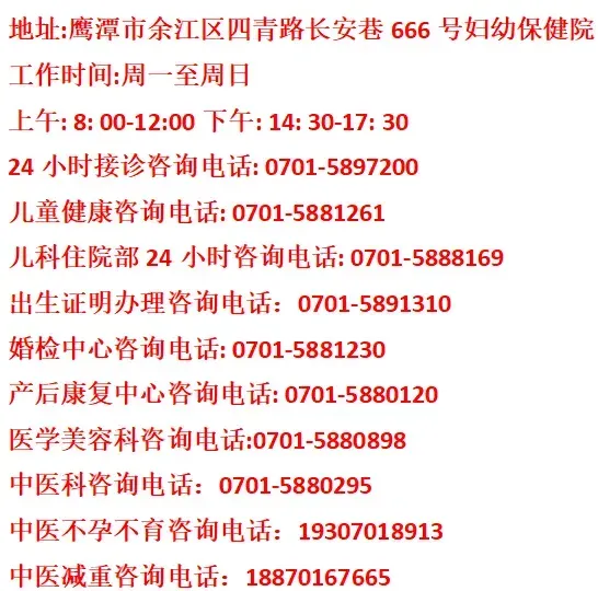 关注我们:[鹰潭市余江区妇幼保健院],获取更多健康资讯和就医指南。