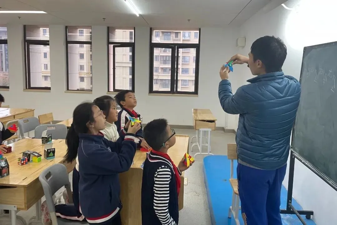 课程介绍:数学魔方社团,是一门将魔方复原技巧与小学数学知识深度融合的特色课程。我们以“指尖上的脑力体操” 为载体,让孩子在玩转魔方的过程中,自然理解图形、对称、排列组合、空间方位等数学概念,真正做到 “玩中学、学中乐、乐中长”。