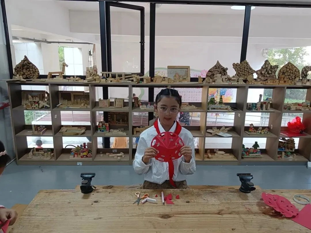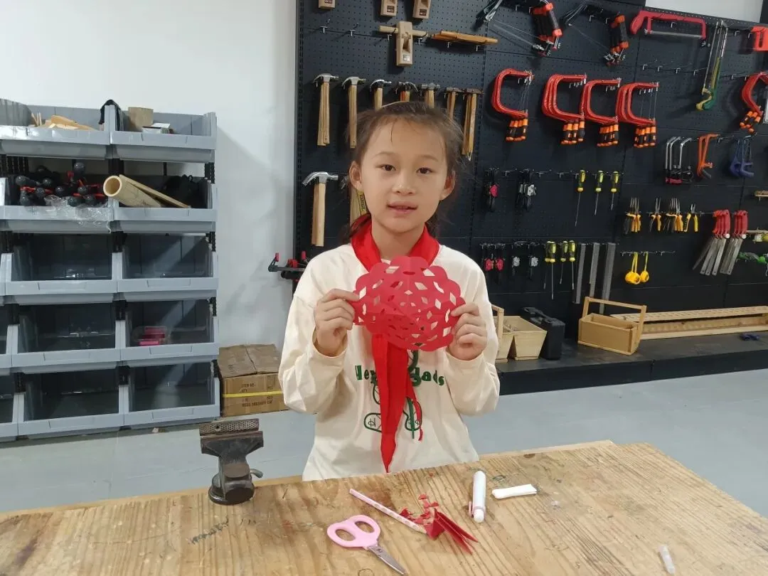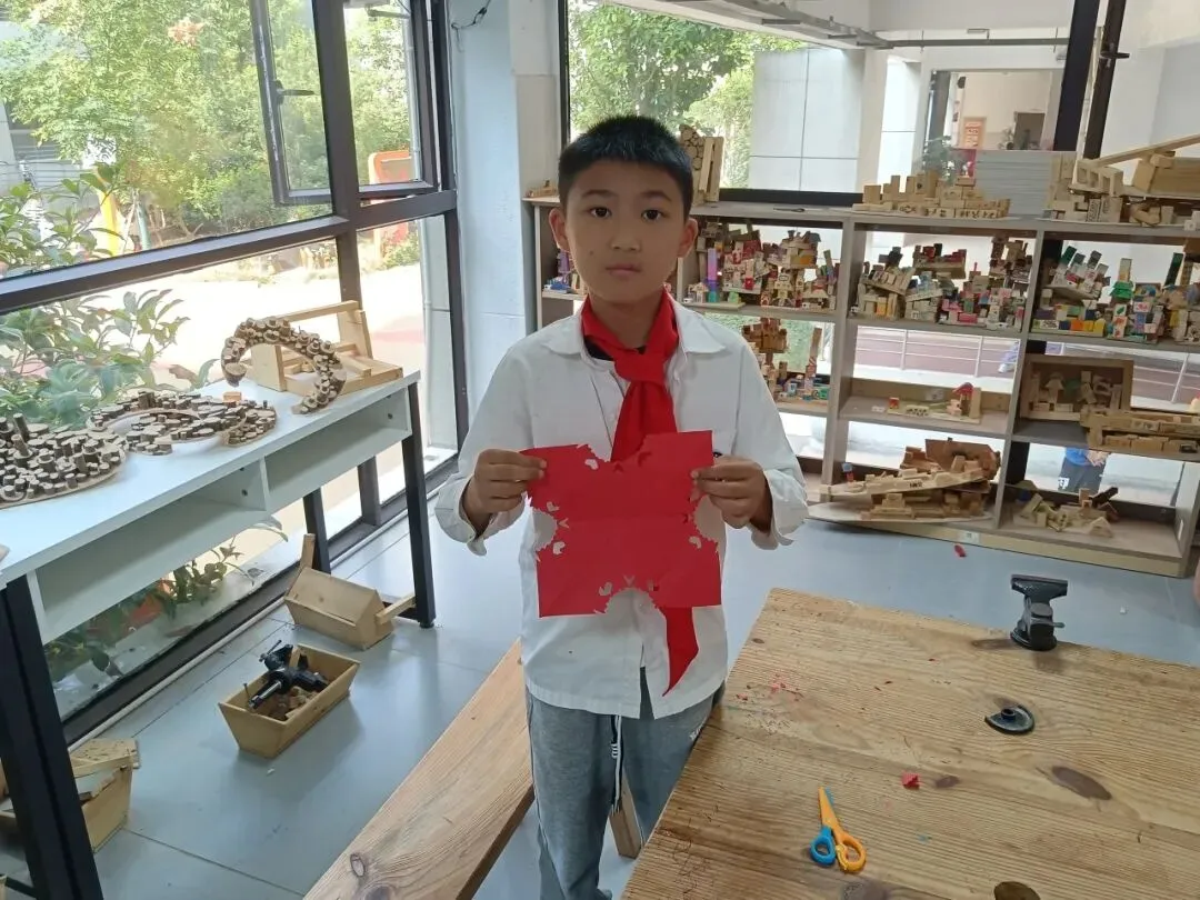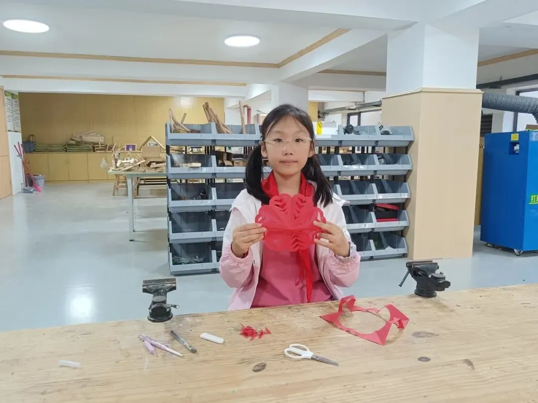 在不断地摸索与实践中,同学们逐渐熟悉剪纸的基本手法,红纸在他们手中有节奏地挥舞着,大家仔细修理边角,用心精雕细琢。随后,一张张作品“新鲜出炉”。