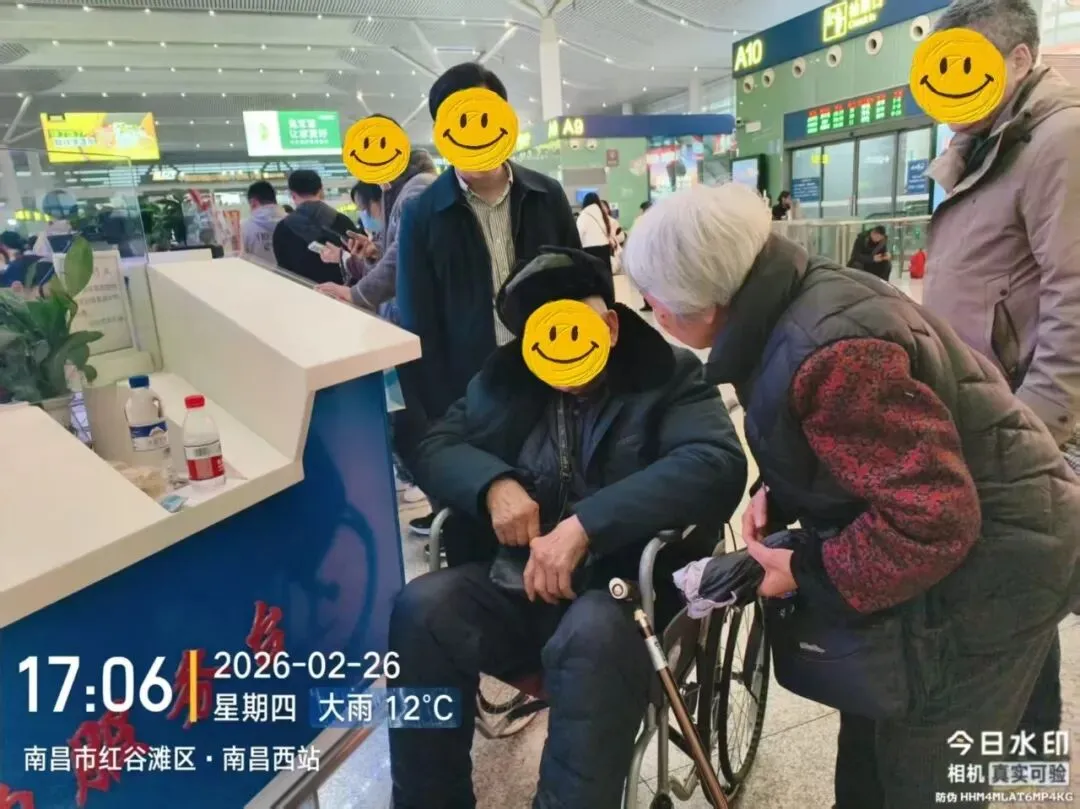 2月26日中午两点半左右,抚州市救助管理站接到南昌西站工作人员紧急求助,称一名家住抚州市高新区某小区的87岁老人独自滞留车站,情况紧急,亟需帮助。