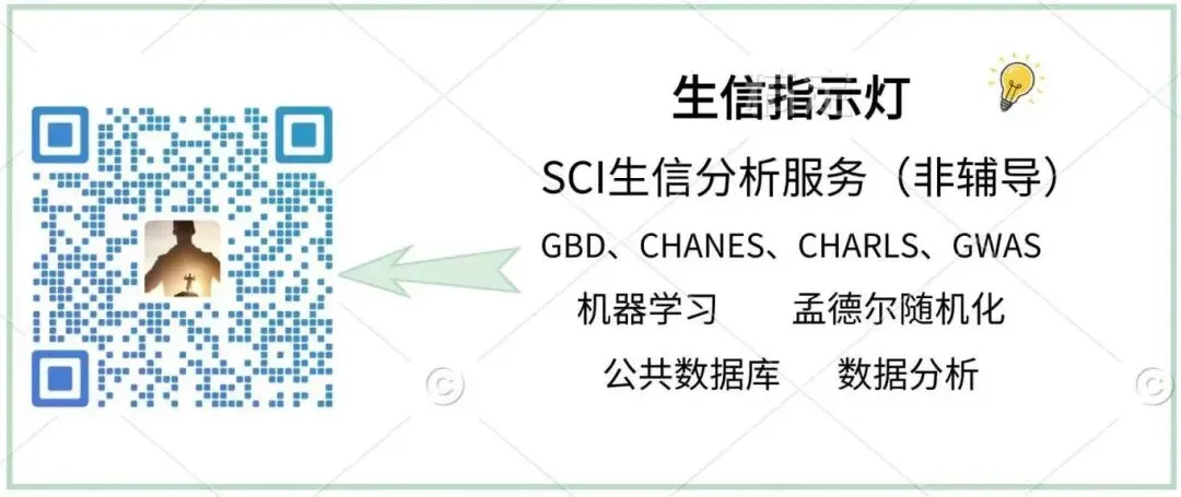 专注于用NHANES数据做挖掘、生信分析,你也想复刻顶刊研究思路的话,【生信指示灯】就是你的最佳助力!↓↓↓
