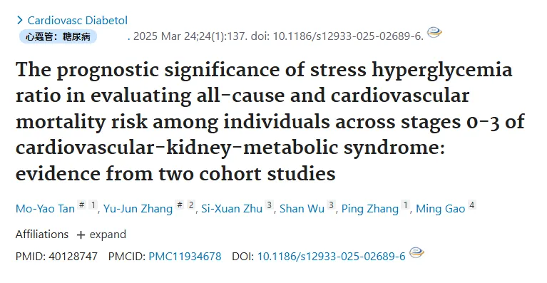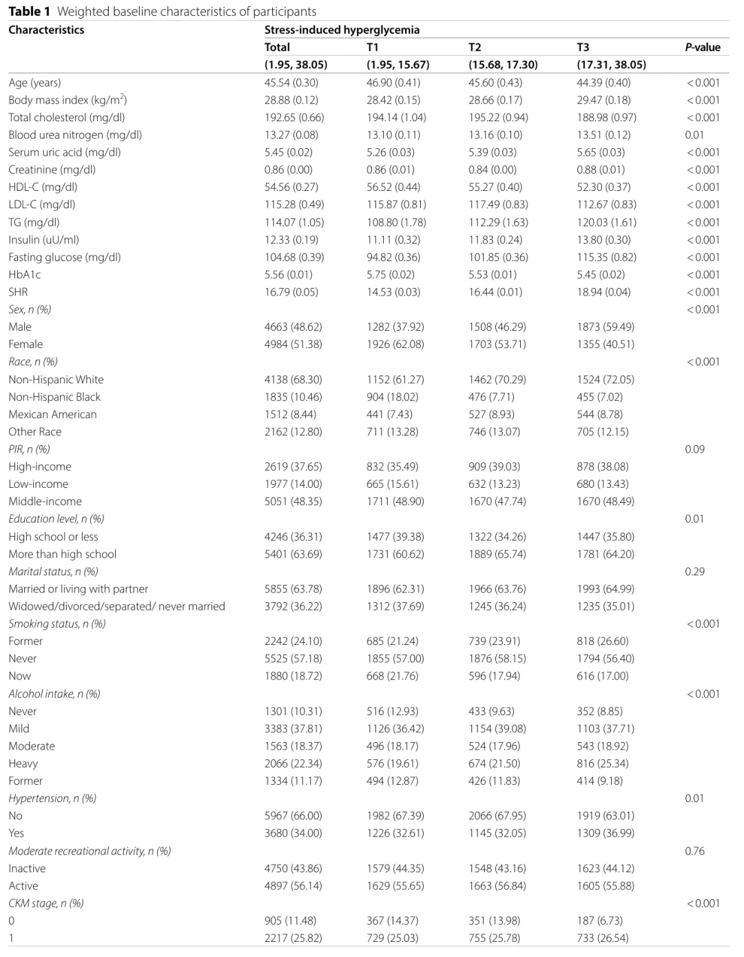 SHR 是量化应激下血糖波动的创新指标,已被证实与多种疾病不良预后相关,但在 CKM 综合征 0-3 期人群中,其对全因和心血管死亡的预后价值尚未被充分阐明。