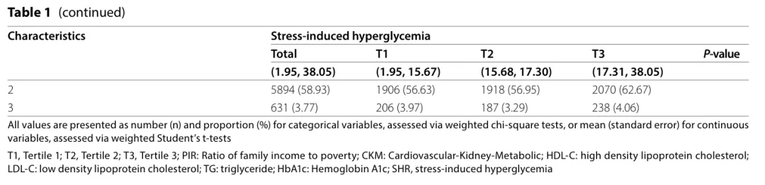 SHR:按公式SHR=FPG/(1.59×HbA1c−2.59) 计算,同时分为三分位(T1-T3)分析;