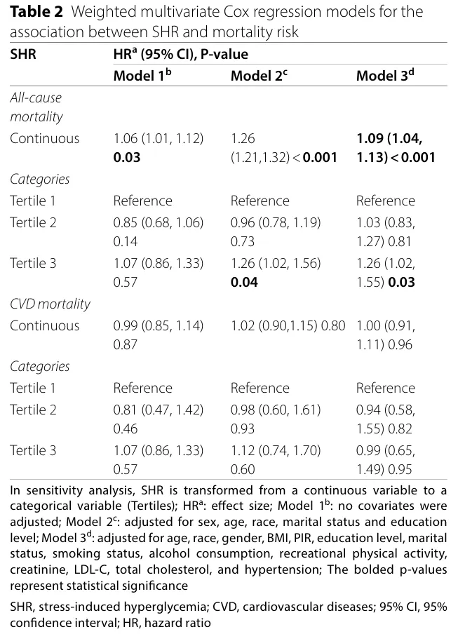 表2.SHR与死亡风险关联的加权多元Cox回归模型