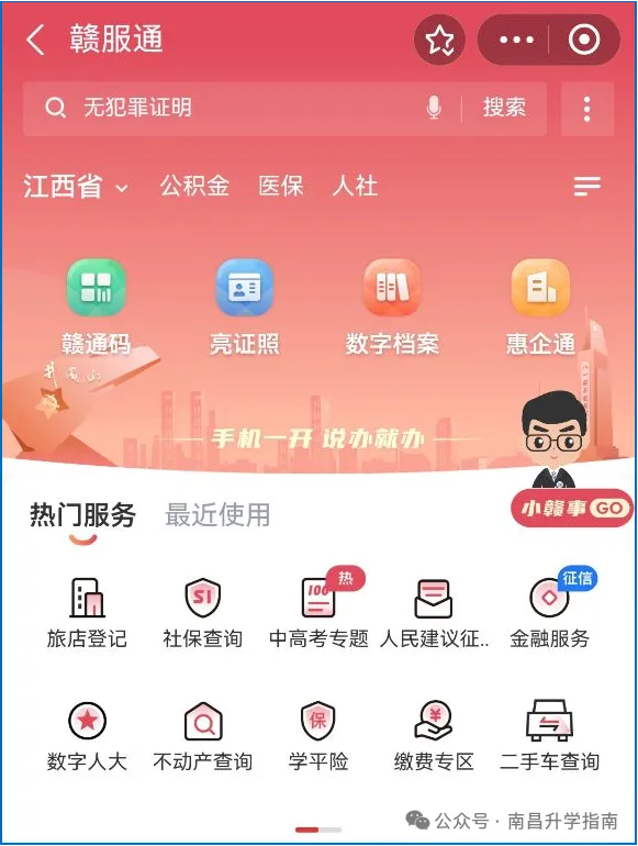1.应用市场下载“赣服通”或支付宝搜索“赣服通”进入平台。