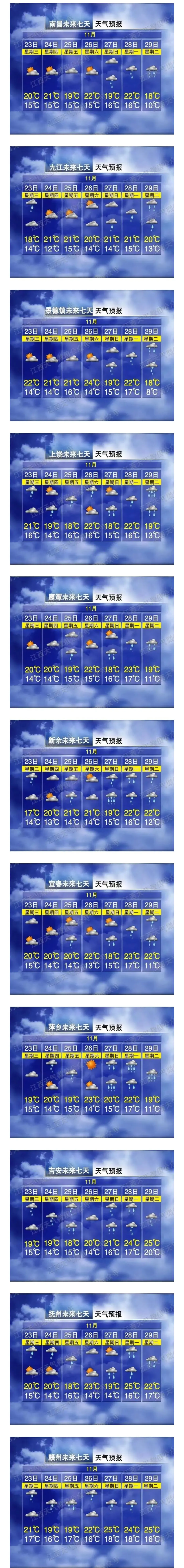 江 西 主 要 城 市 七 天 天 气 预 报