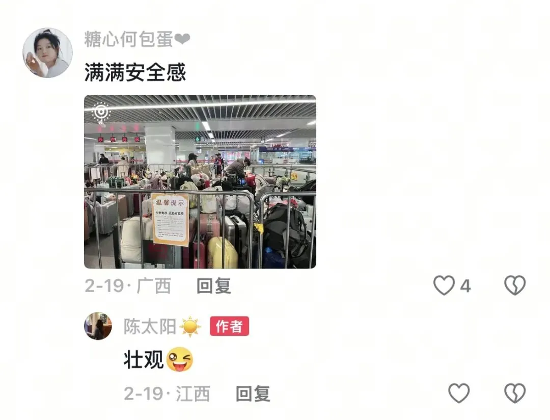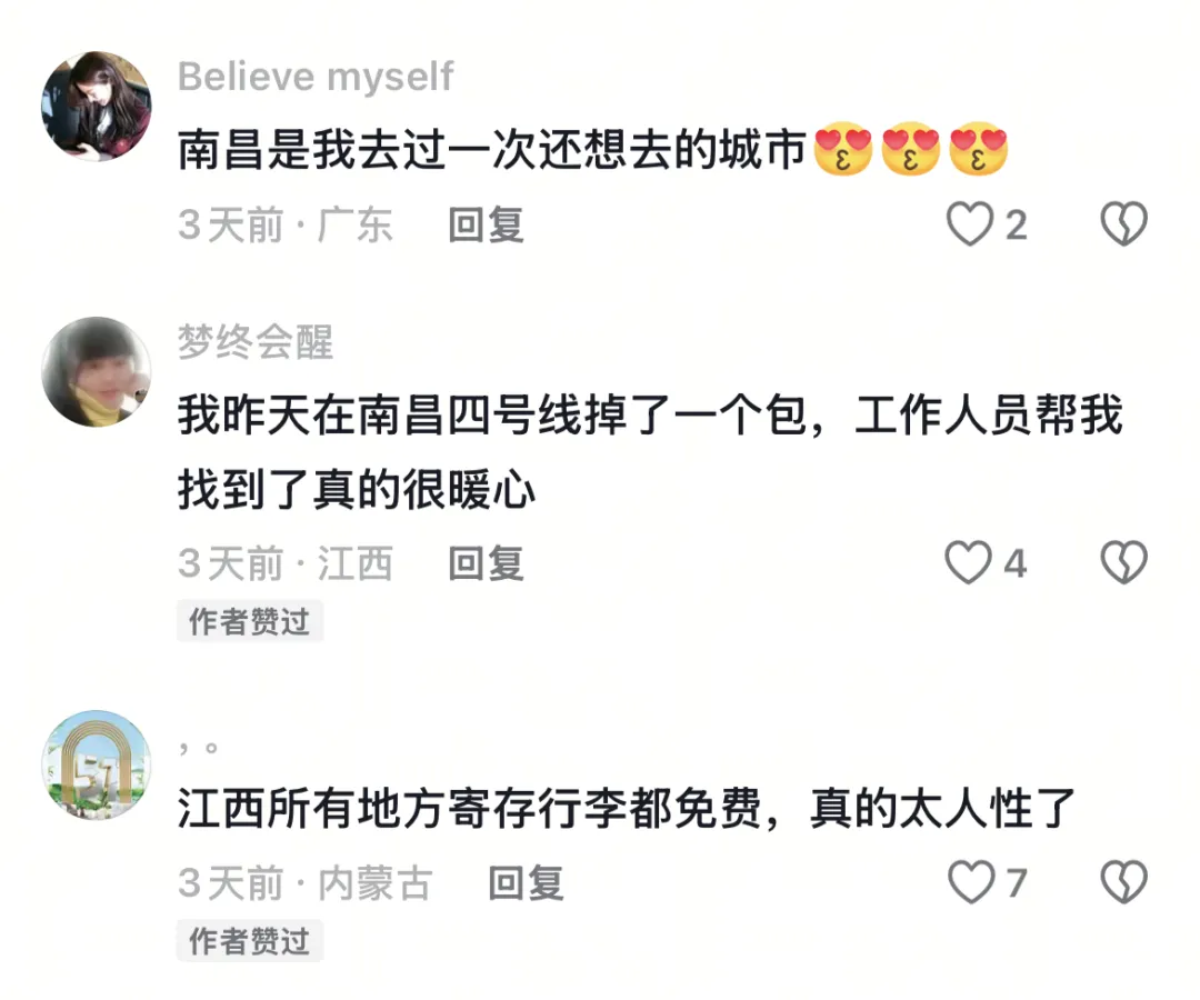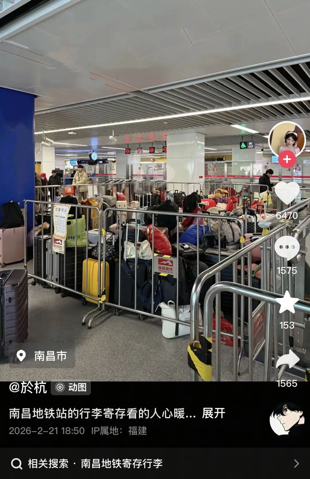 网友@於杭在个人账号分享了地铁站内的行李寄存区域,一句“南昌地铁站的行李寄存看的人心暖暖的”,收获6400+点赞、1500+评论,评论区,一句句留言刷屏: