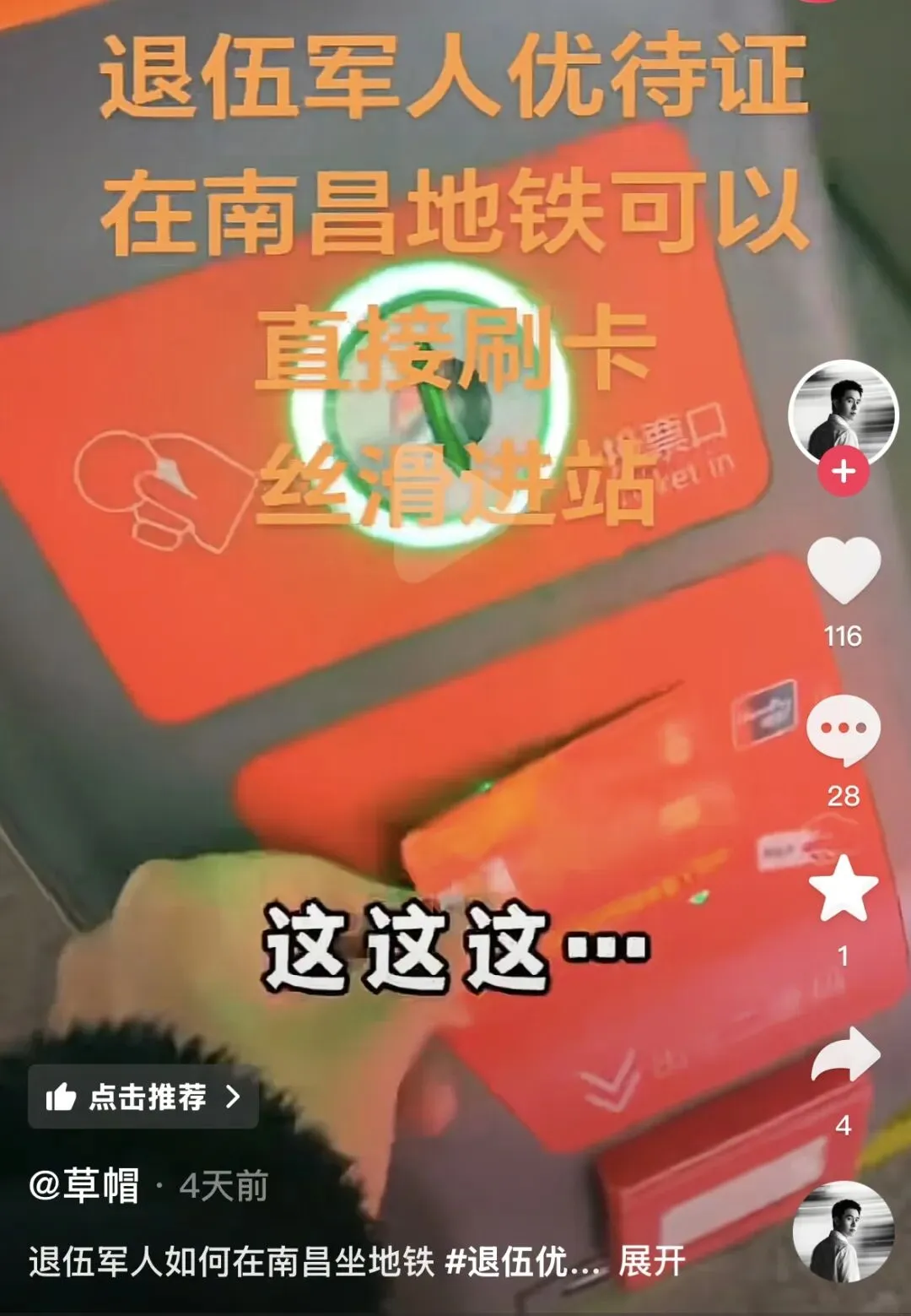 一句简单的配文,承载着退役军人的荣光,也彰显着南昌地铁的拥军情怀。