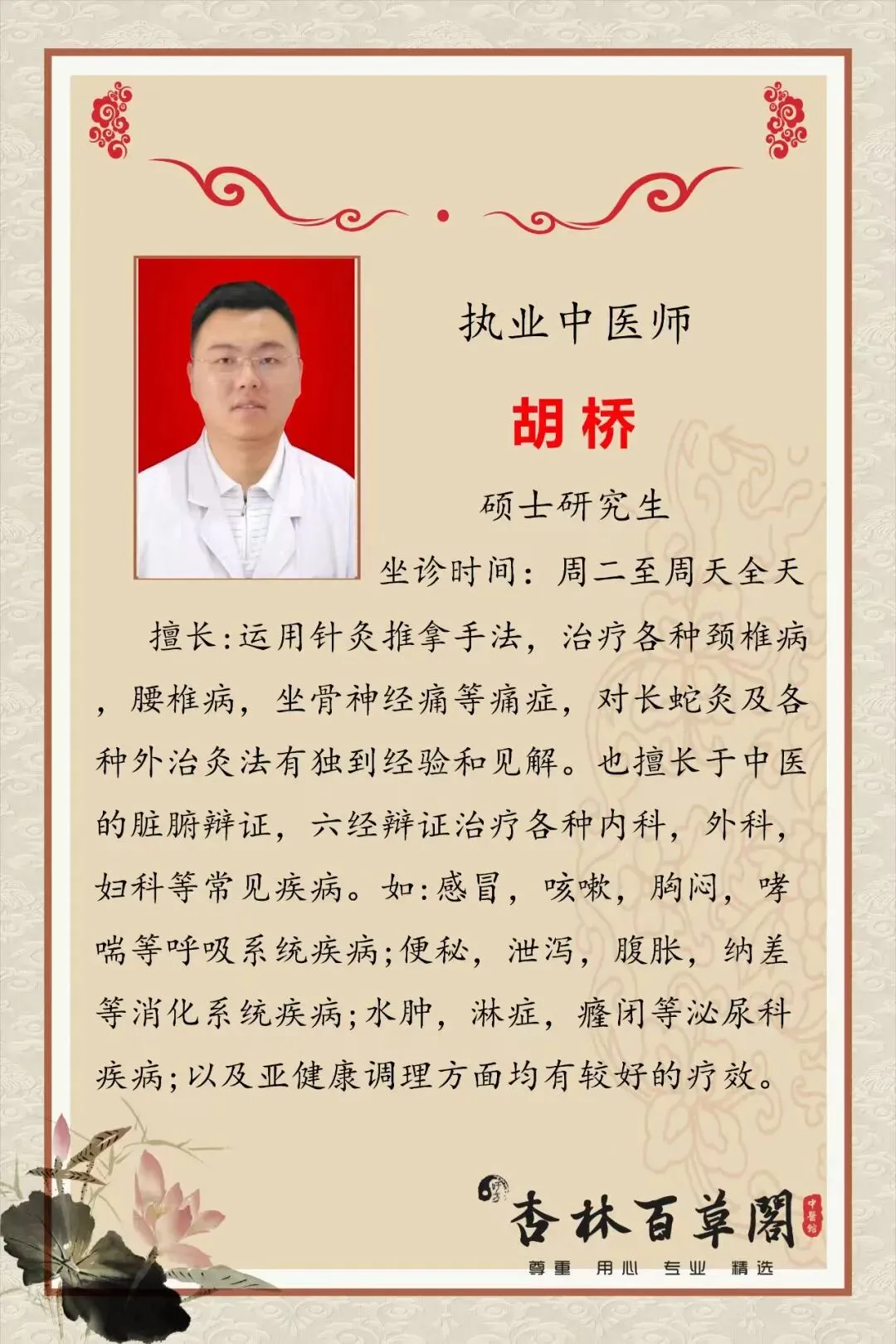 南昌杏林百草阁坐诊名医:执业中医师胡桥