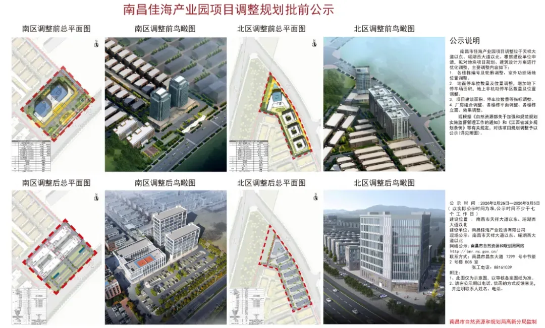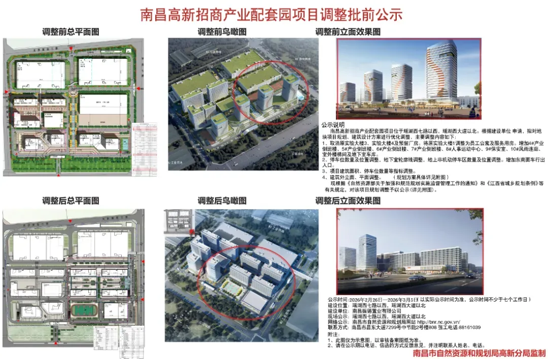 近日,南昌市自然资源和规划局发布南昌高新招商产业配套园项目调整批前公示。