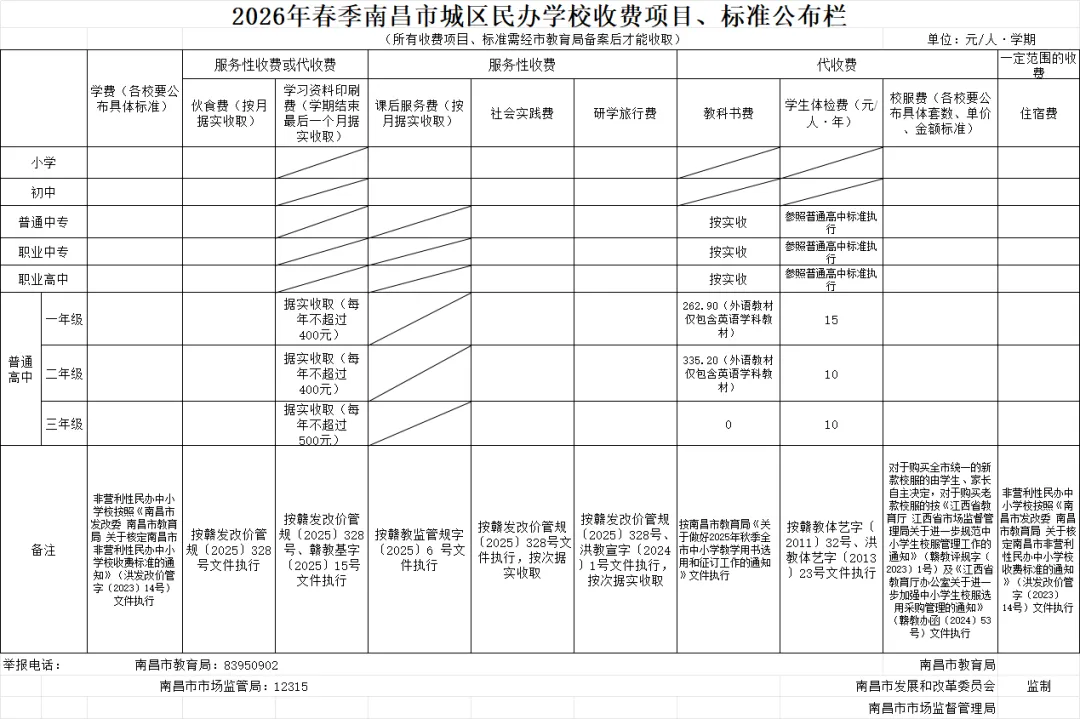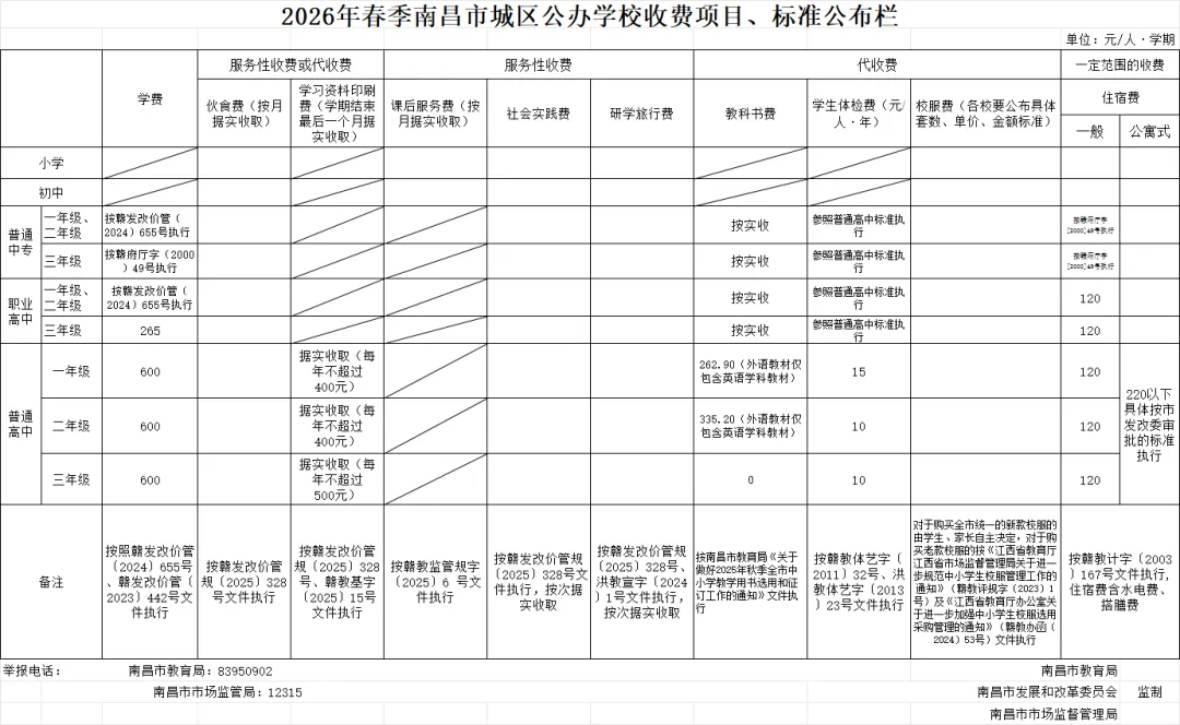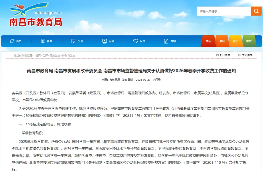2026年南昌中小学春季学期收费项目、标准公布!附缴费流程→