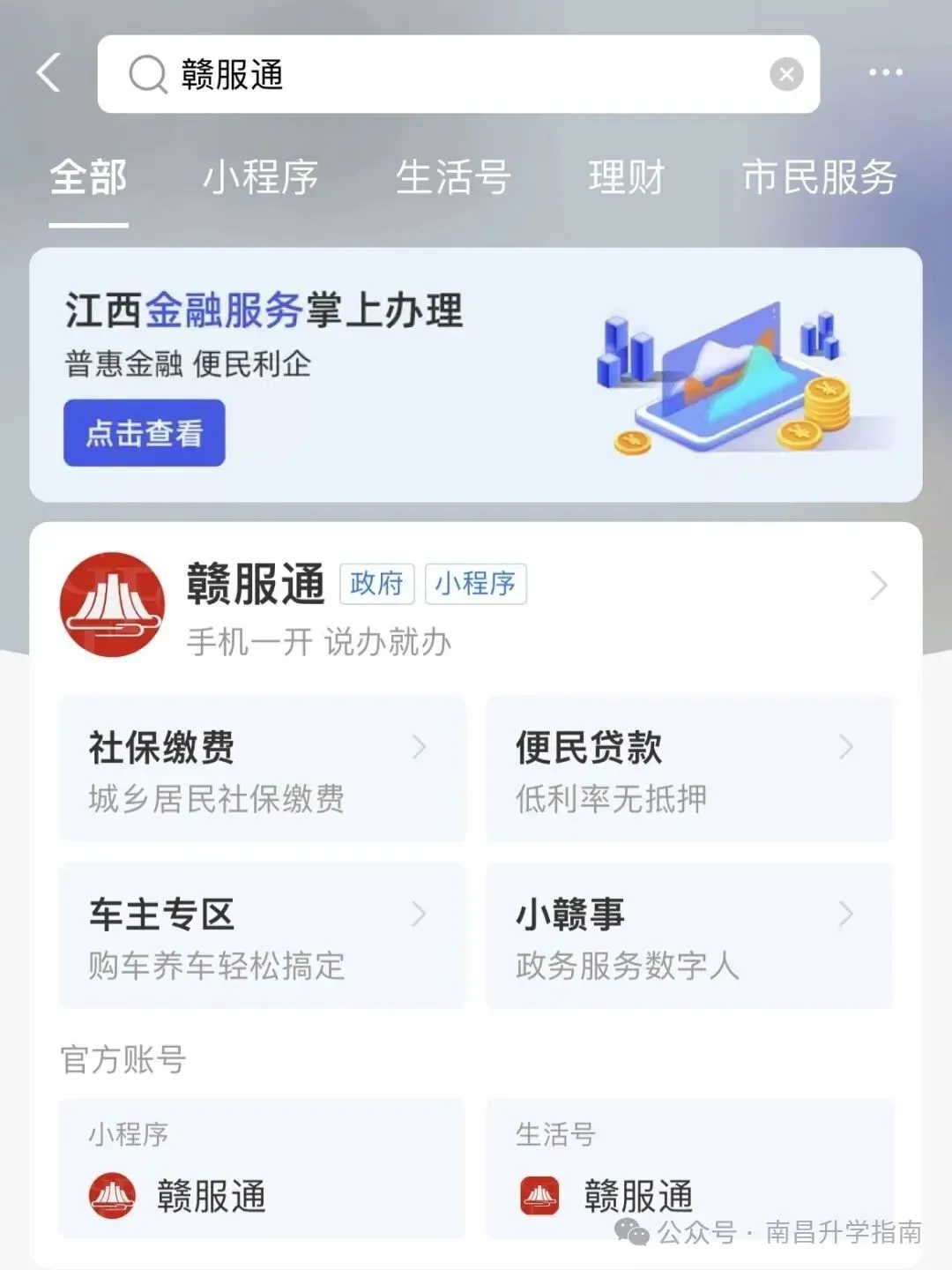 1.应用市场下载“赣服通”或支付宝搜索“赣服通”进入平台。