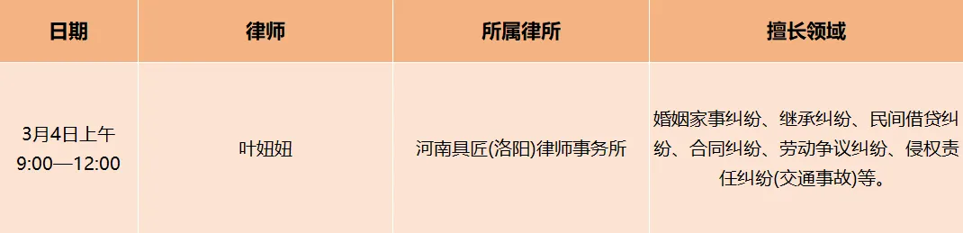 下周律师值班表请收好