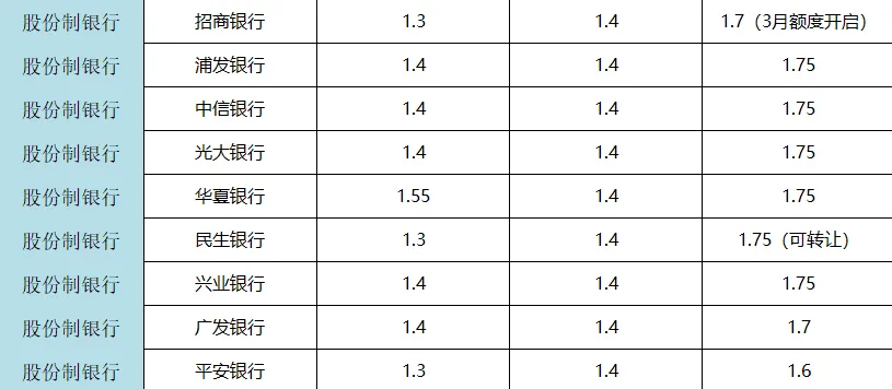 股份制银行扎堆这一梯队,浦发银行、中信银行、光大银行、兴业银行、民生银行3年期利率均为1.75%;招商银行3年期1.7%(3月额度正式开启,可提前预约),这类银行利率适中,福利活动还特别丰富,性价比拉满。第三梯队(3年利率1.55-1.6%,稳字当头)