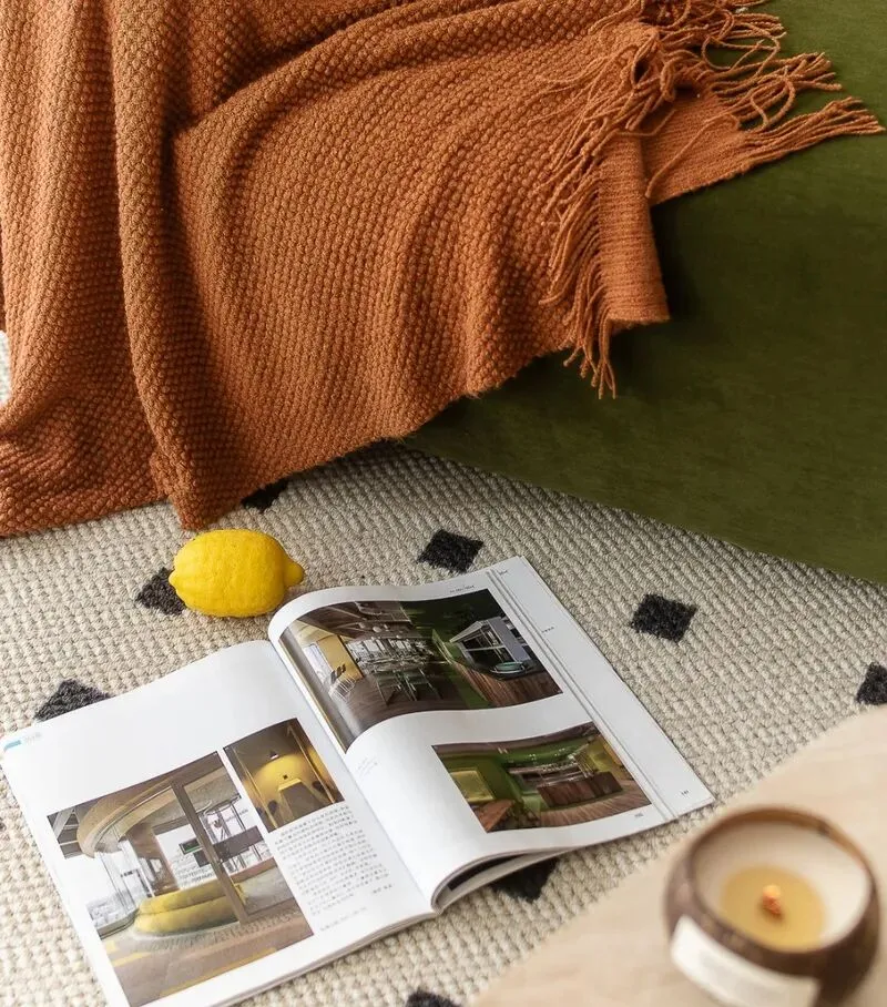 2 客厅真的非常简单,以前我总觉得没茶几那不就是空了吗,她就真的茶几没有,地上铺个小地毯,沙发是那种很普通的懒人沙发,靠着窗,对着电视柜,有点像那种租房时代的感觉,偶尔地上扔点杂志,就特别生活化,我有点被这种松弛感打动了,我自己喜欢那种东西都摆满桌面的感觉,但是她家正好反着来,啥都收起来。