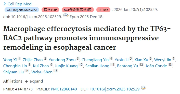 中文标题:《TP63-RAC2途径介导的巨噬细胞细胞增多作用促进食管癌中的免疫抑制重塑》