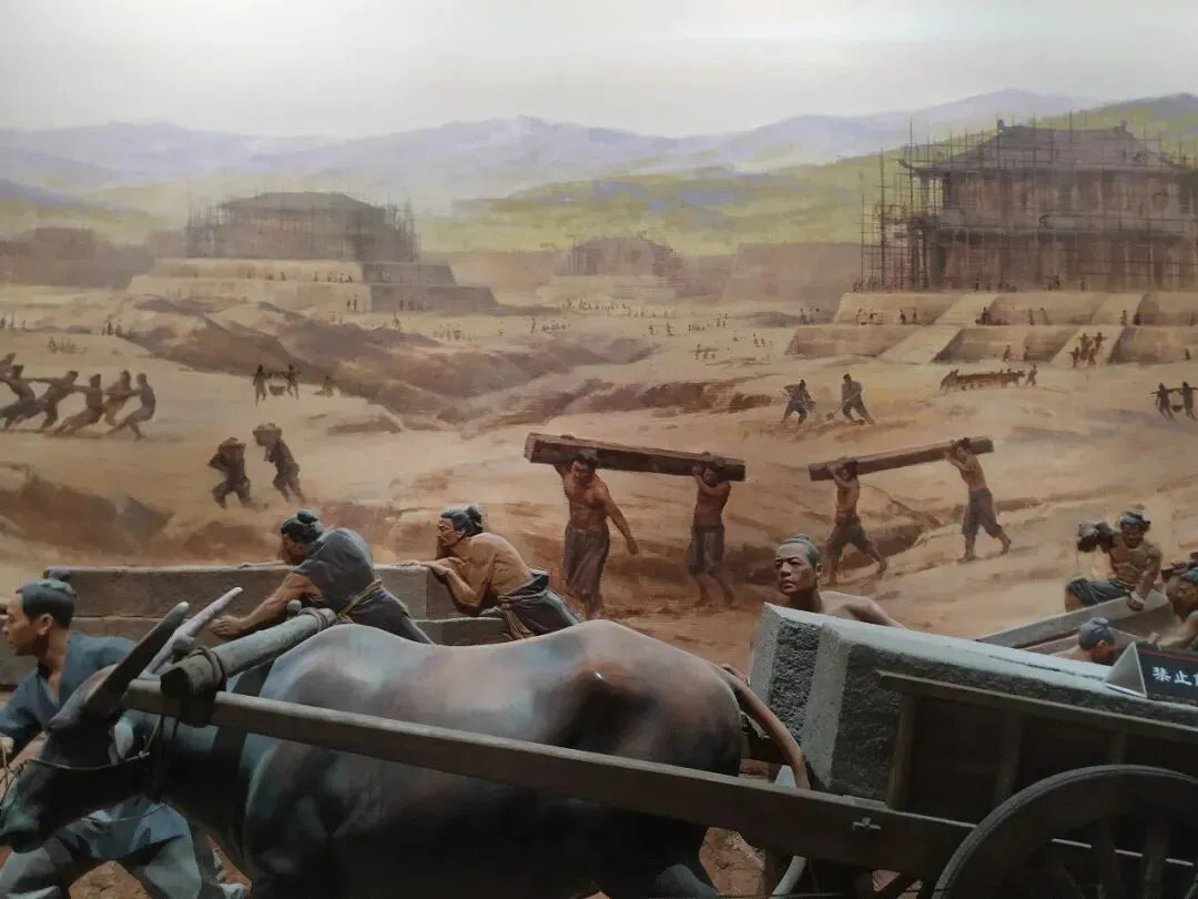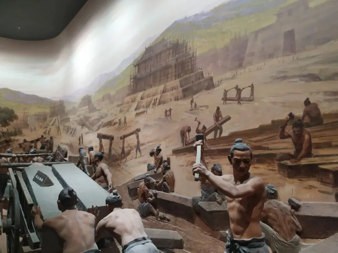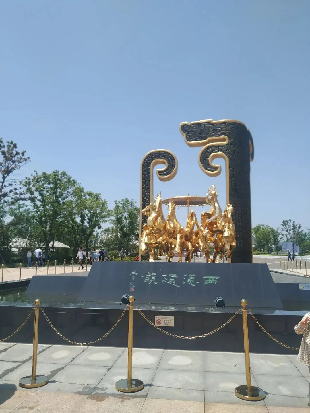 遗址公园以援璧礼天为设计理念,整体布局遵循汉代礼制,入口汉阙高耸,青瓦覆顶,朱柱挺立,复刻西汉王侯门第的威仪。