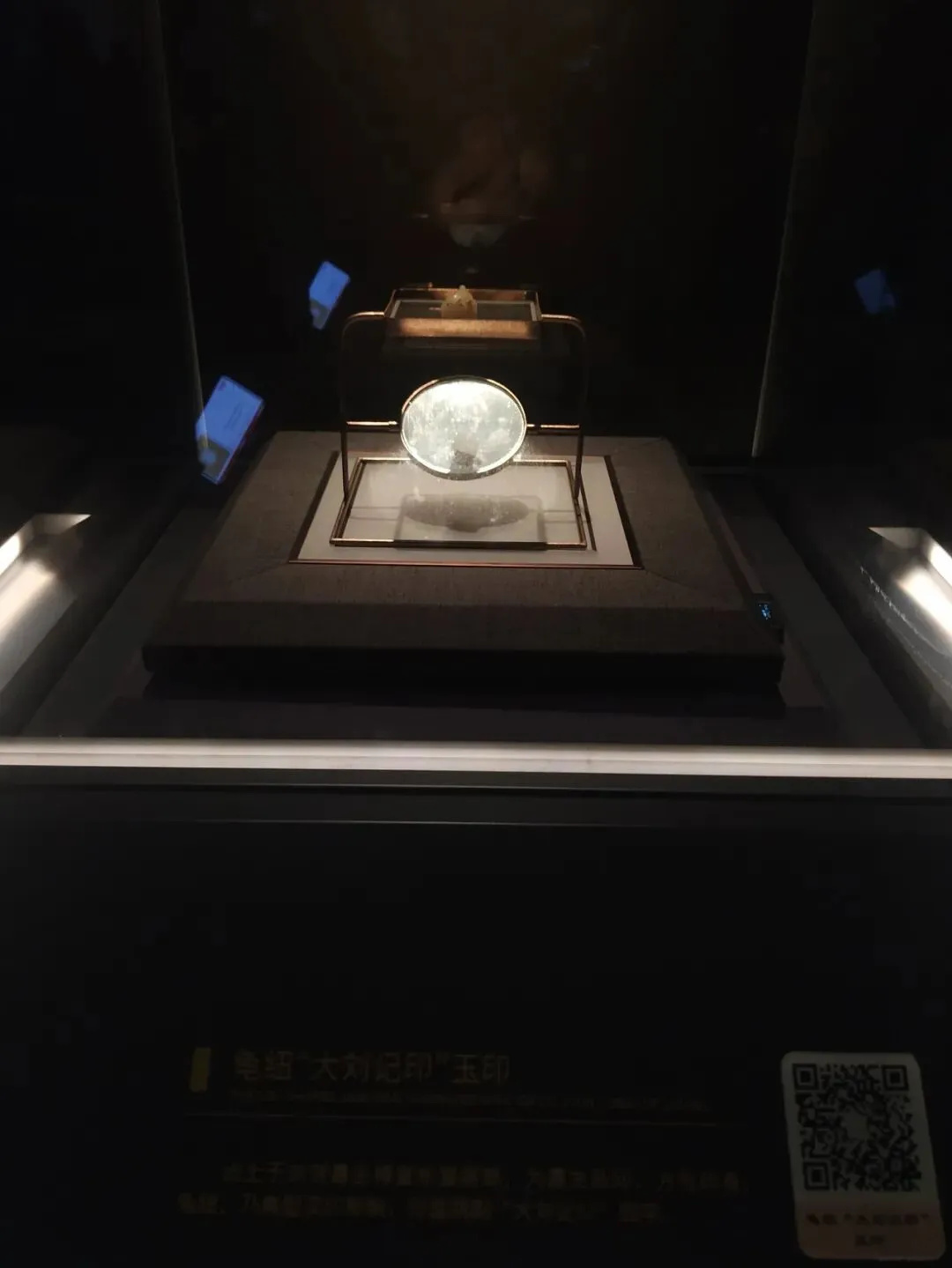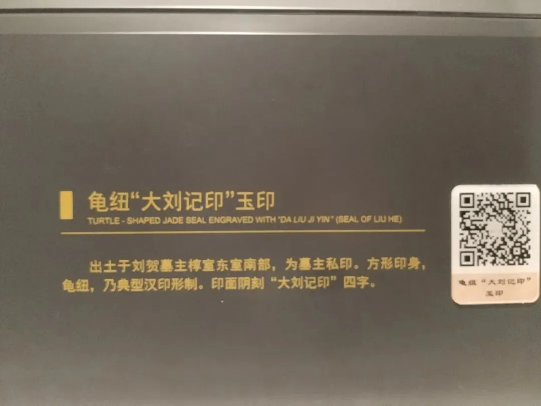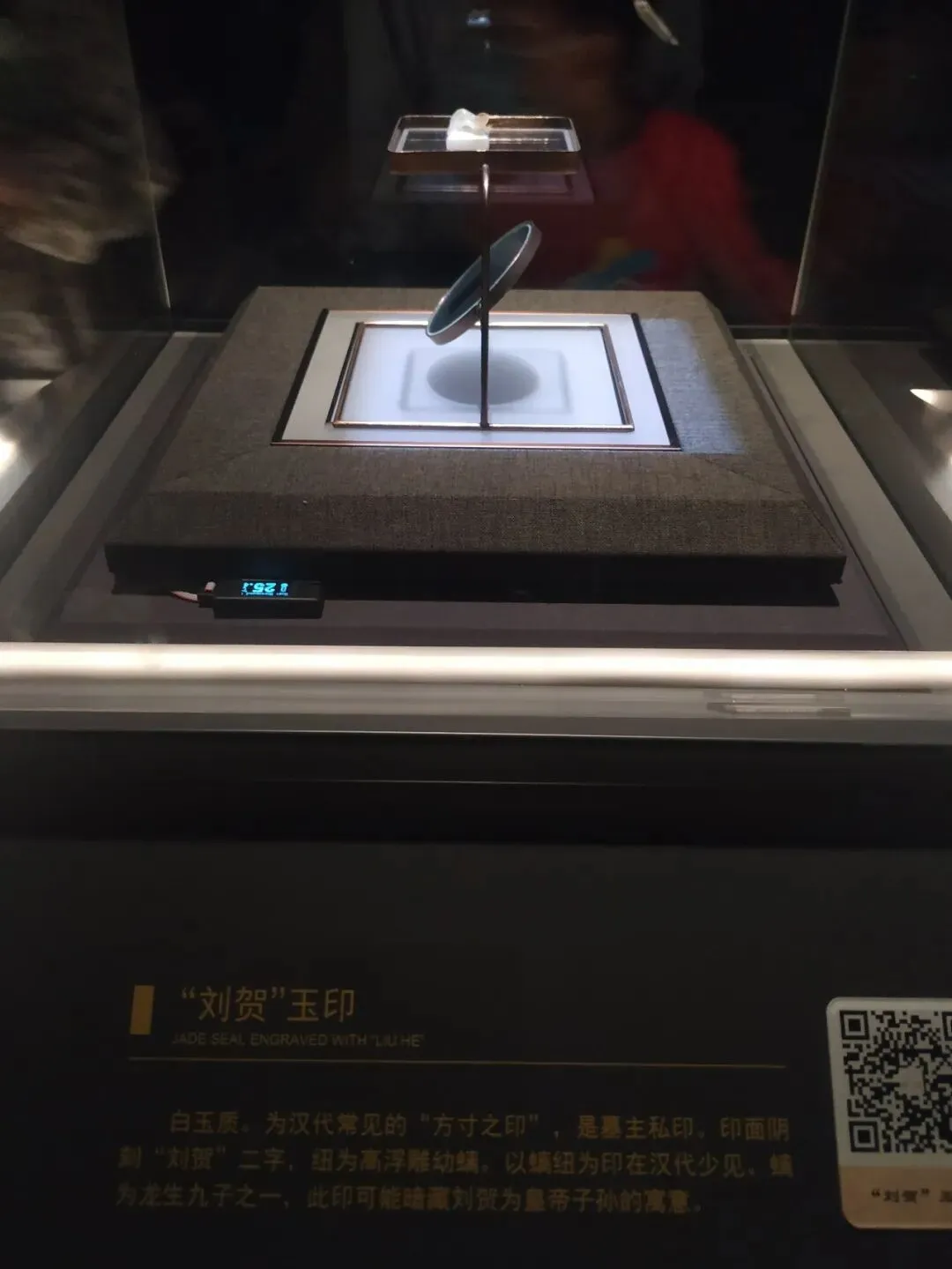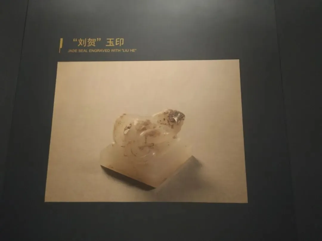 刘贺玉印静静陈列,这是确认墓主人身份的关键物证,也是汉代印章艺术的典范。这方玉印,是他身份的终极凭证,也是历史浮沉的无声注脚。