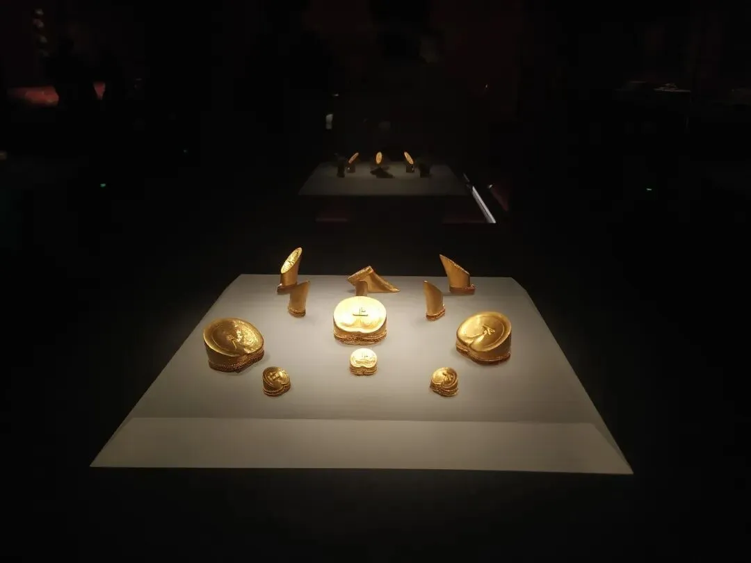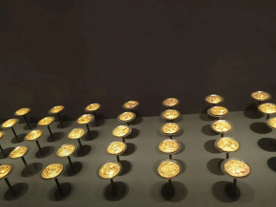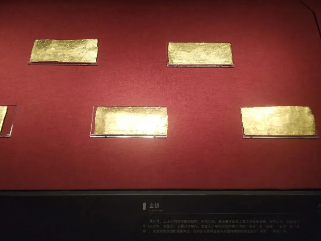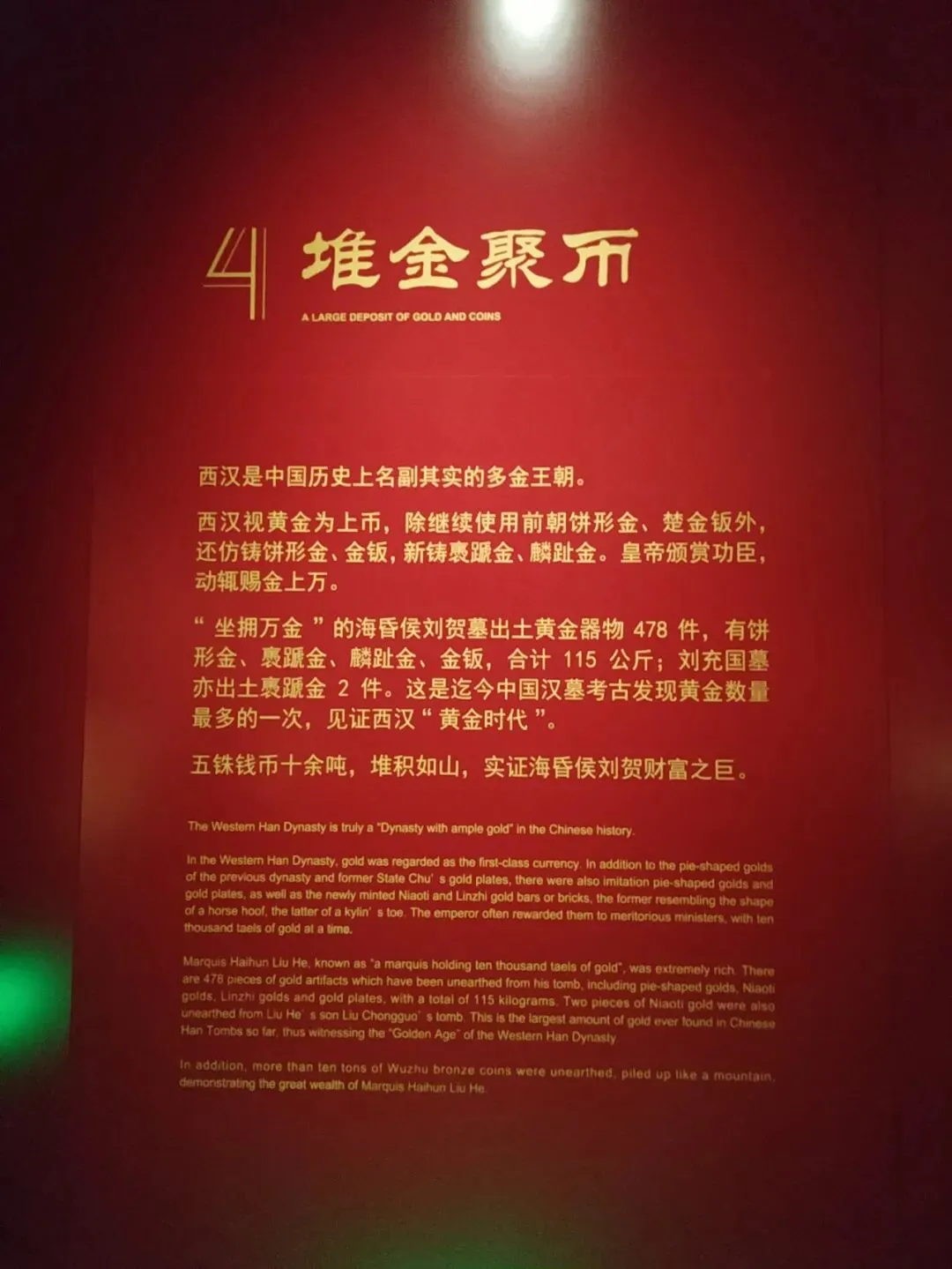 “金色海昏”展厅,扑面而来的是金器的璀璨光芒,这里是海昏侯墓最震撼的展区,也是西汉“黄金时代”的实物见证。