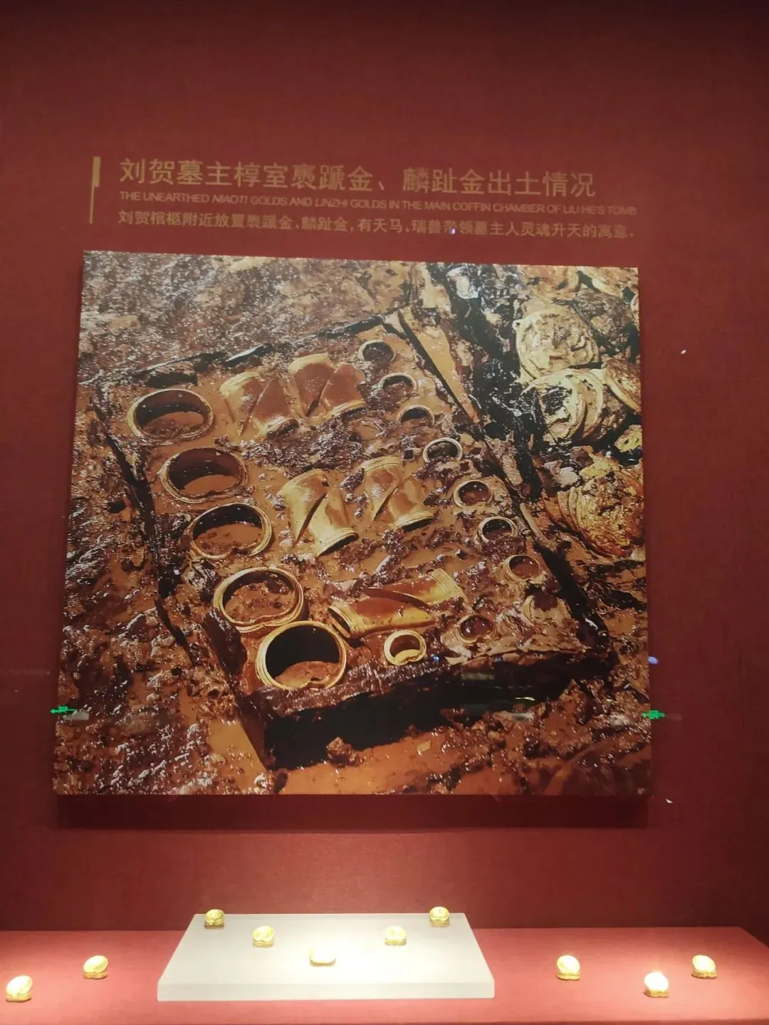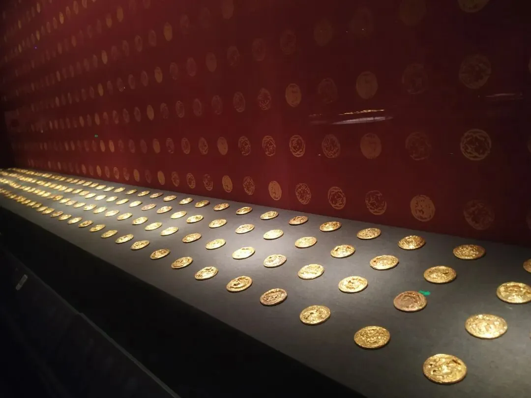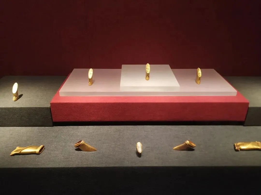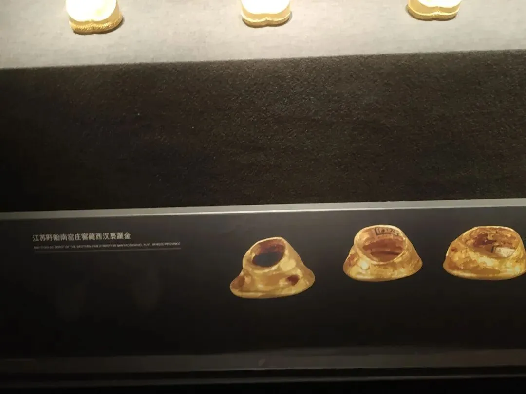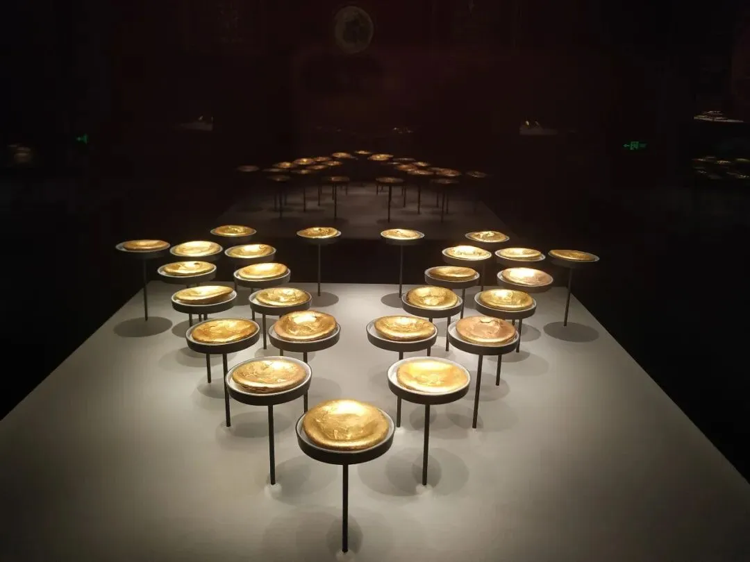 “金色海昏”展厅,扑面而来的是金器的璀璨光芒,这里是海昏侯墓最震撼的展区,也是西汉“黄金时代”的实物见证。