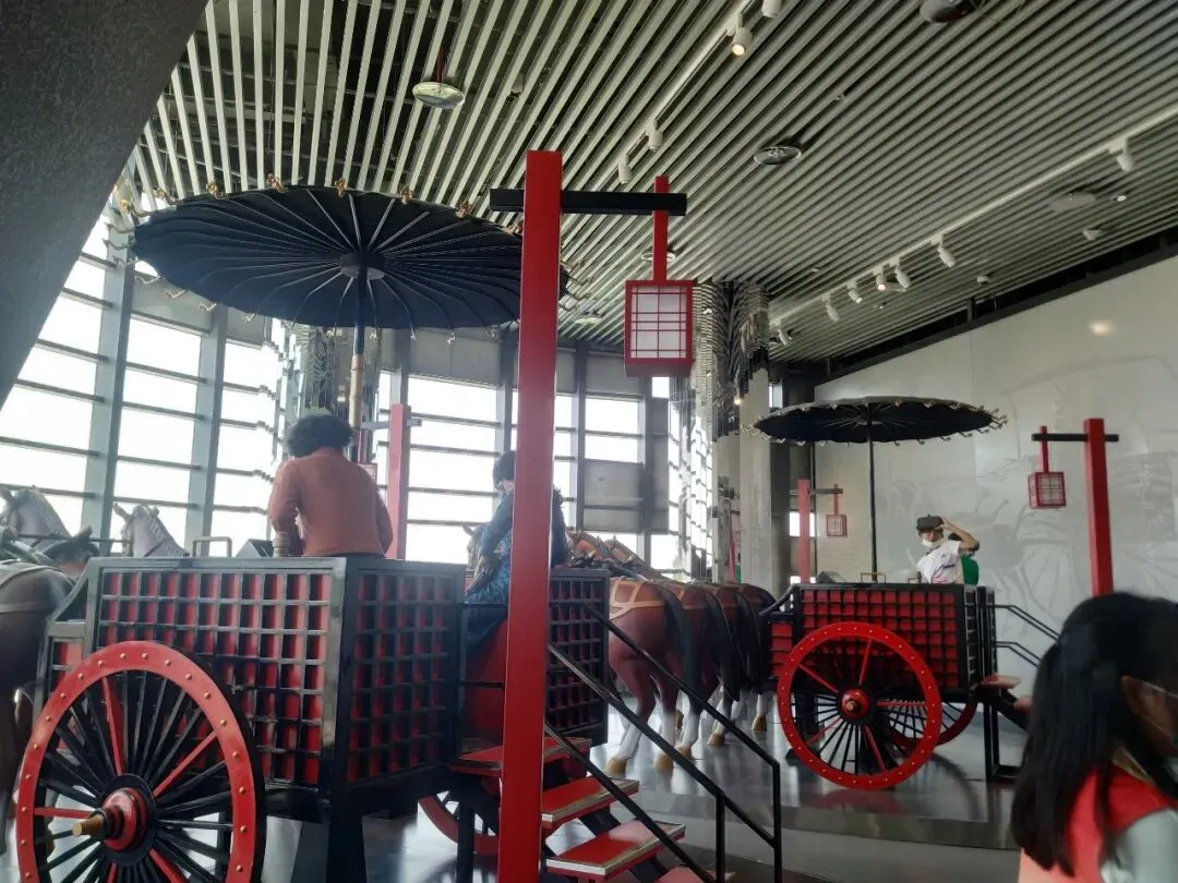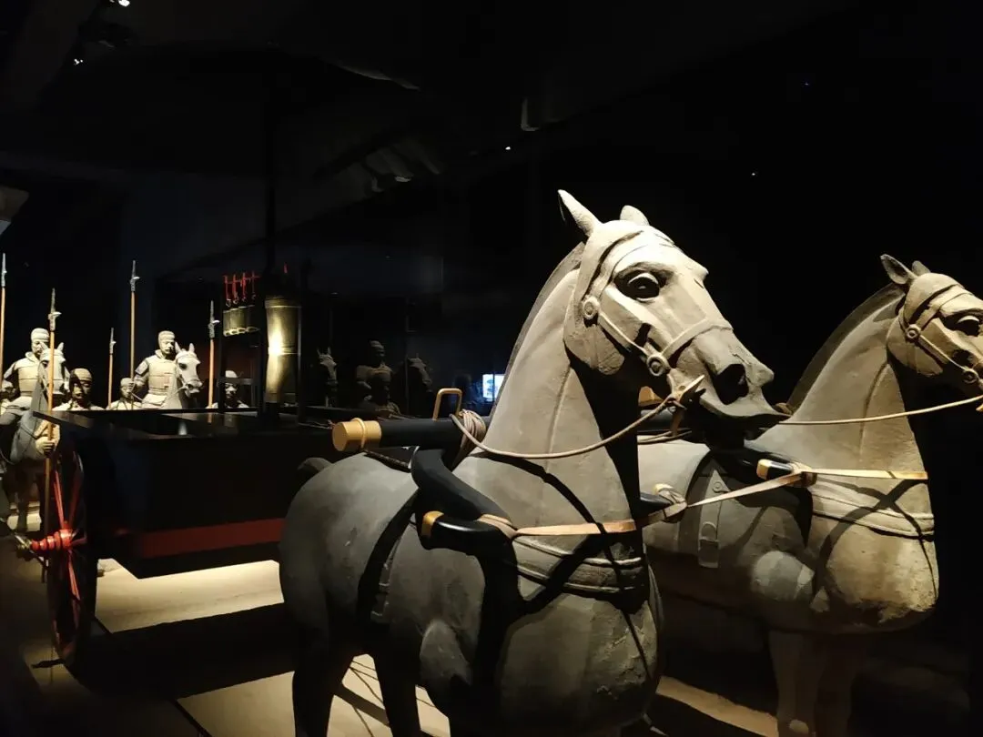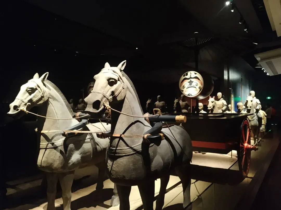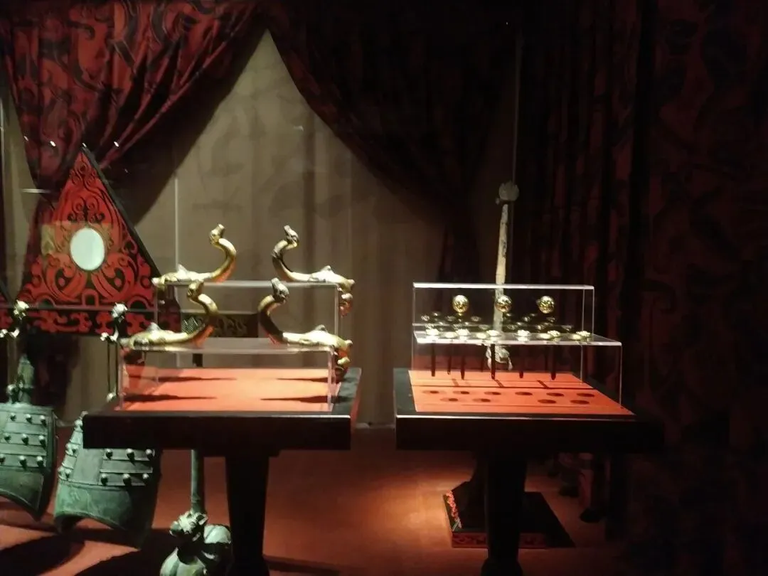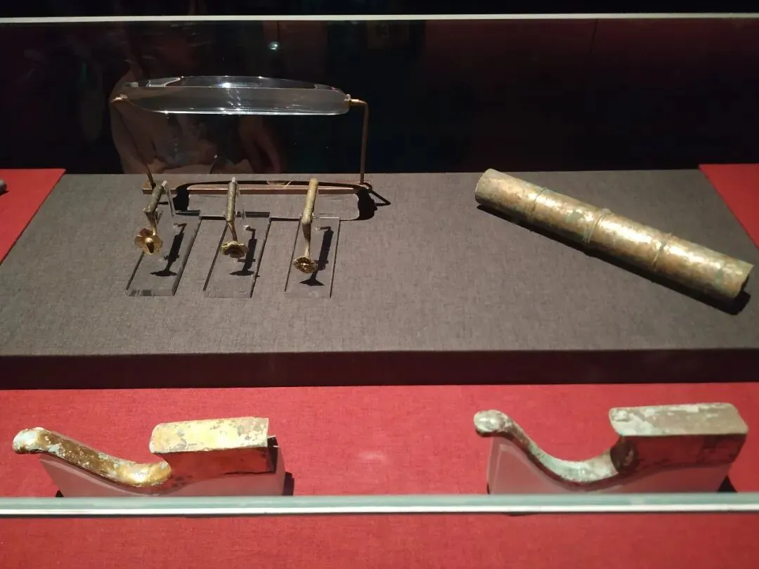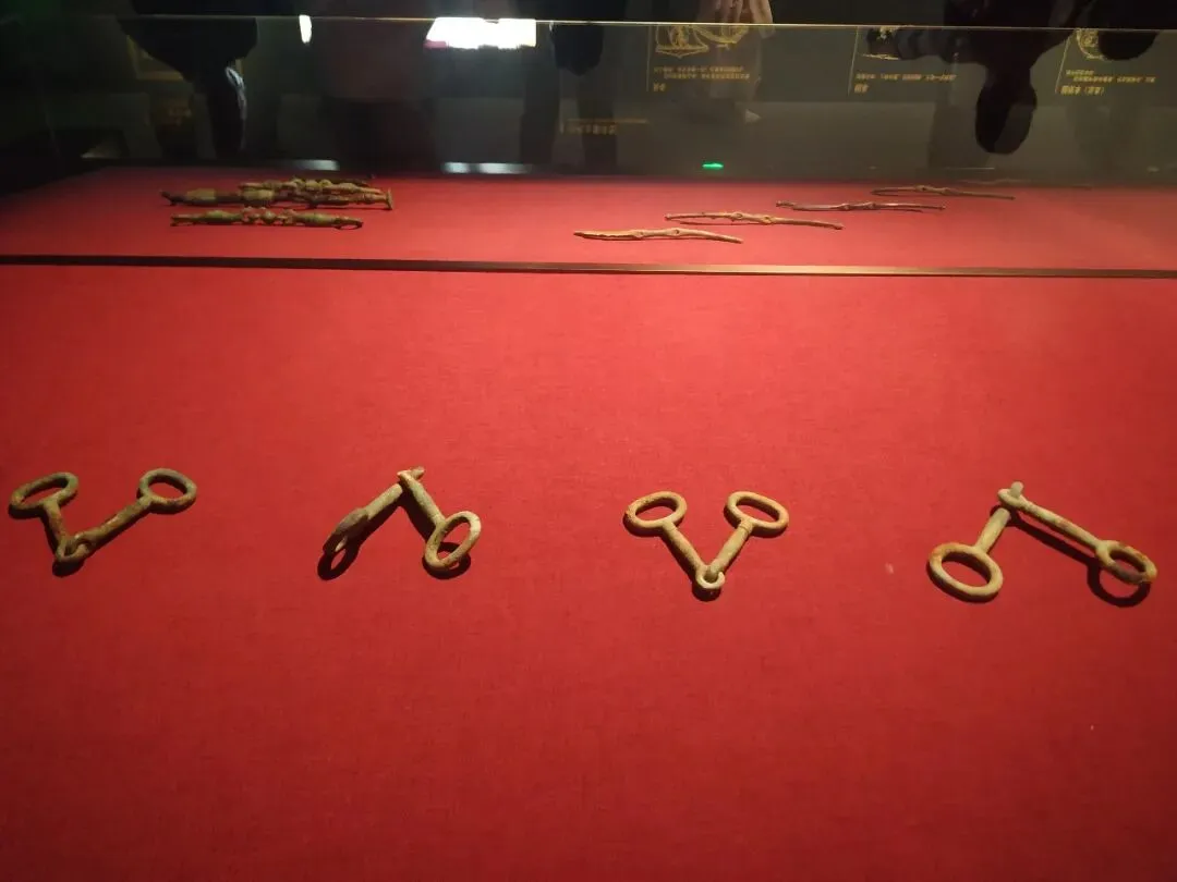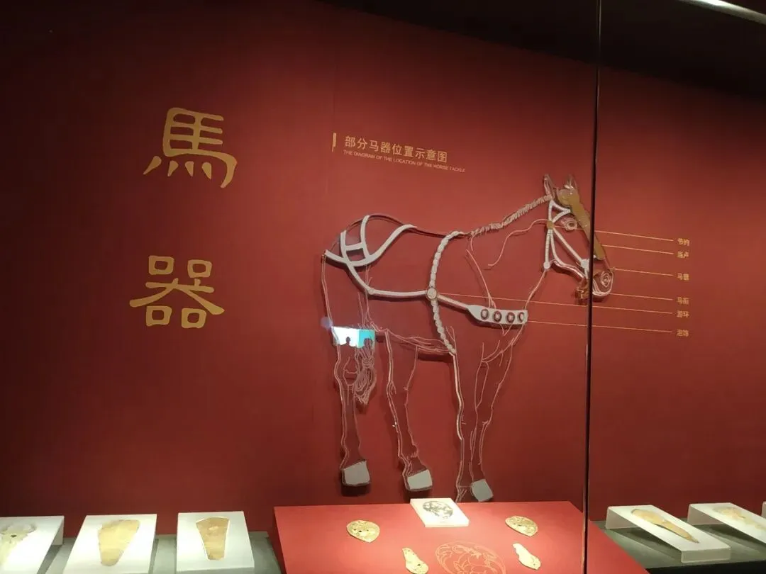 青铜展区汇聚海昏侯墓出土的礼器、生活用器、车马器,品类繁多,尽显汉代王侯的排场与智慧。车马器展区,4000余件错金银、鎏金车马饰件精巧绝伦,墓中陪葬5辆驷马安车、20匹马,是长江以南首次发现的真车马陪葬坑,印证汉代王侯出行的最高等级,“驷马高车”的威仪尽收眼底。