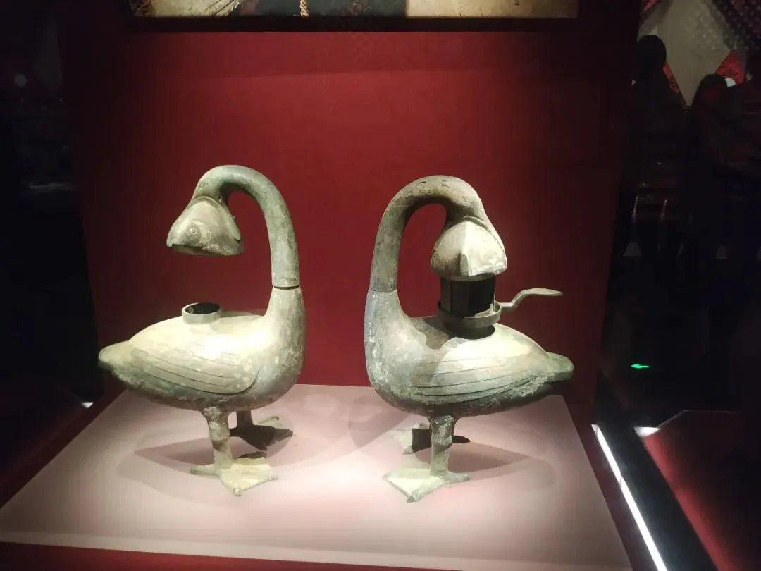 青铜雁鱼灯堪称“汉代环保神器”,灯体作鸿雁衔鱼造型,雁颈弯曲,鱼身饱满,灯火燃烧时,烟气通过雁颈导入腹腔,溶于水中,无烟尘污染,既美观又实用,设计巧思远超时代。
