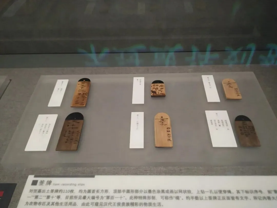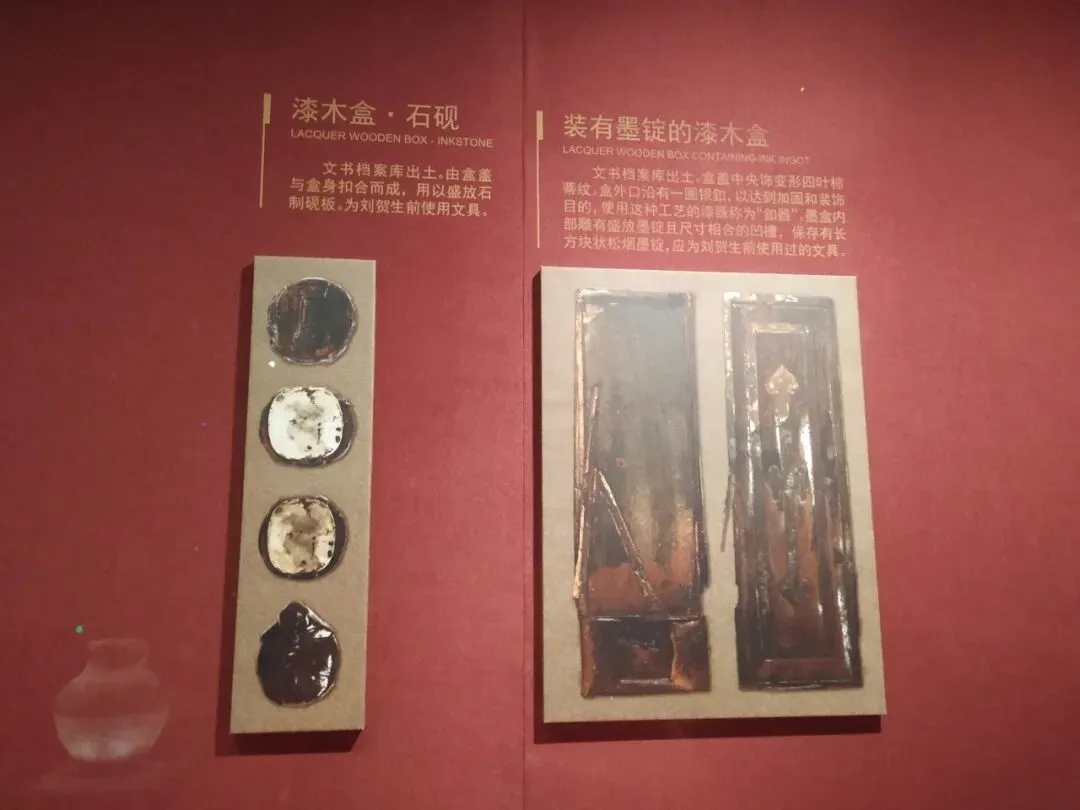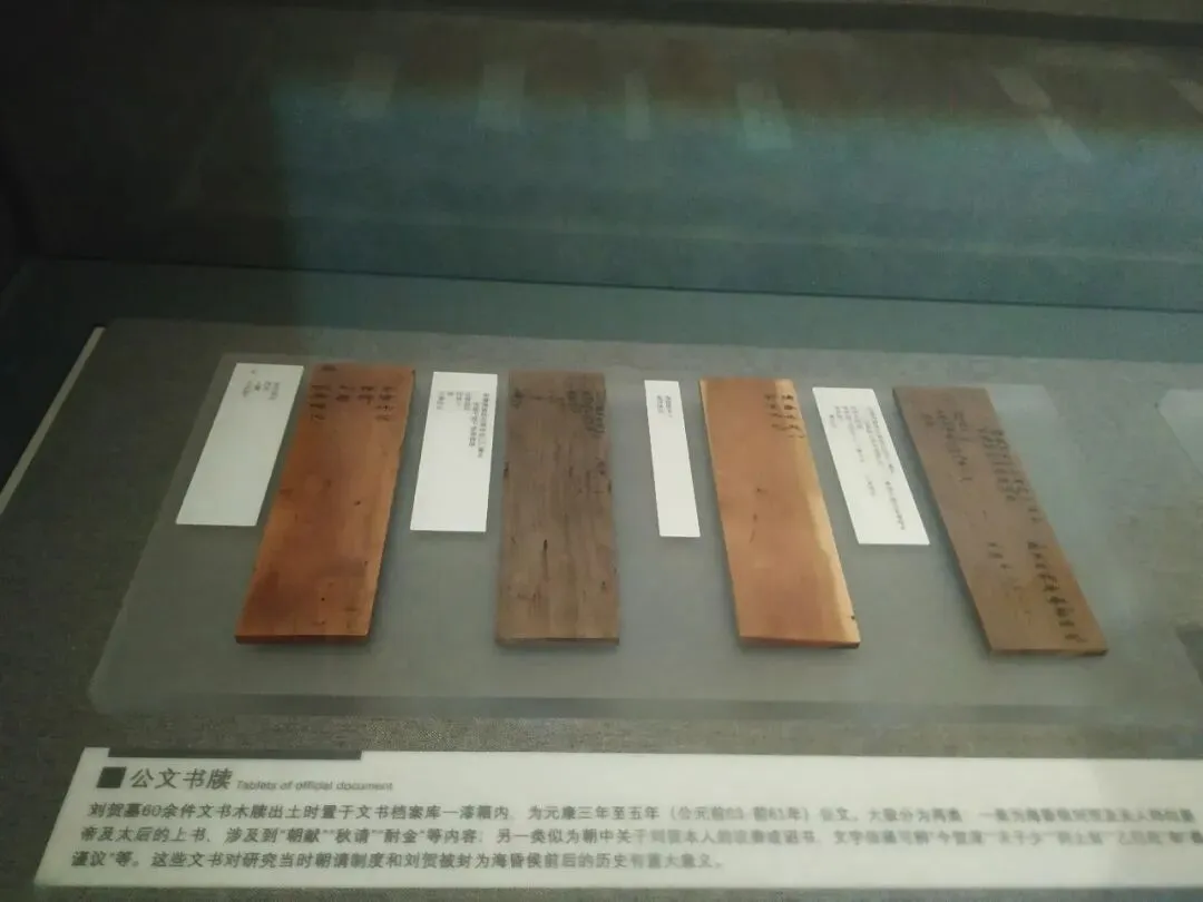 “书香海昏”展厅,是海昏侯墓的“文化瑰宝”之地,文字与简牍承载起汉代的文化信仰,颠覆了刘贺“昏庸无知”的历史定论。墓中出土的砚台、墨锭、书刀等文房用具,成套摆放,工艺精致,印证刘贺“爱读书、好儒学”的真实形象,与史书中的负面记载形成鲜明对比,让我们重新认识这位被误解千年的废帝。