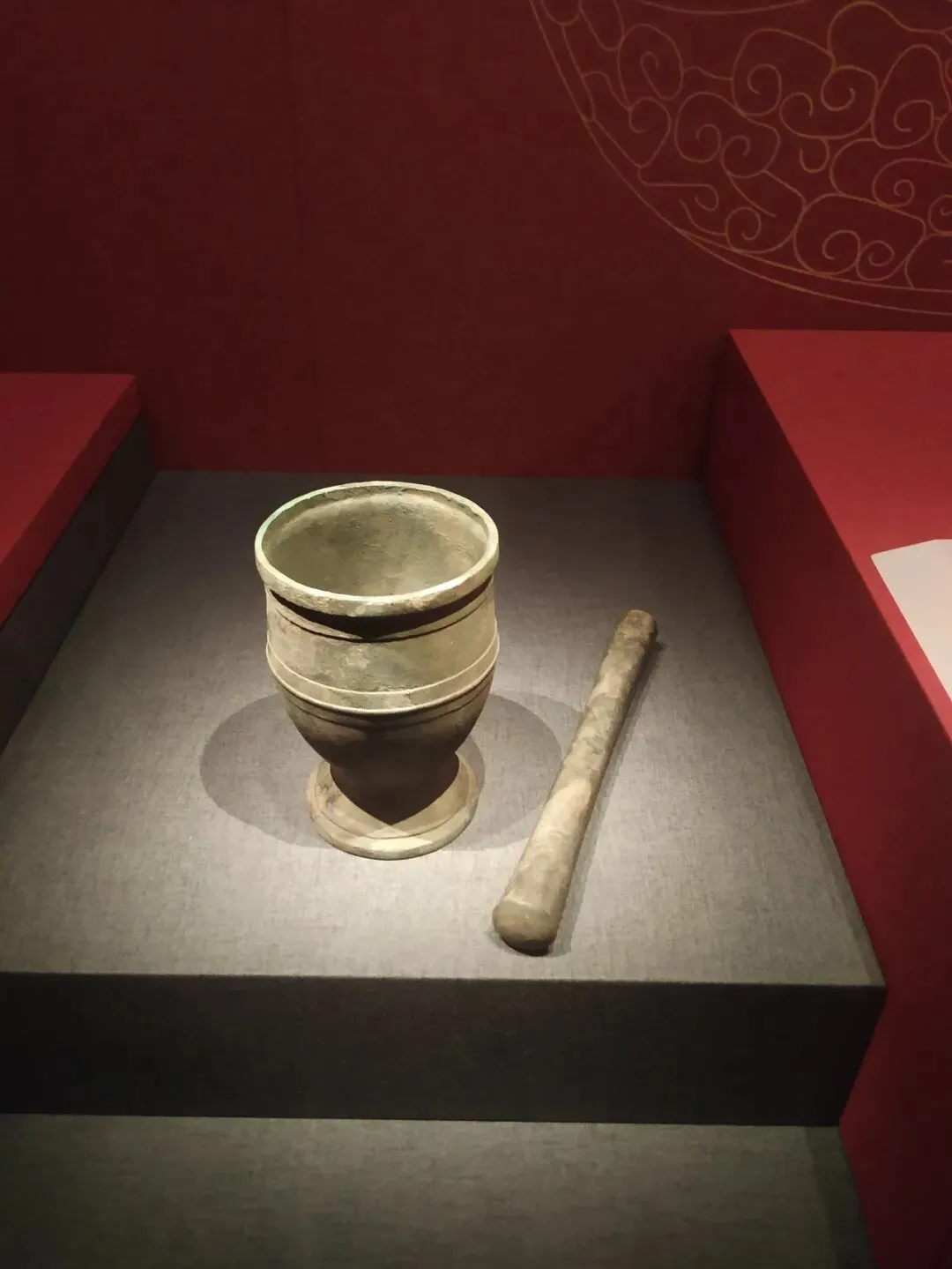 青铜蒸馏器内残留芋头、谷物遗存,将中国蒸馏酒技术提前至西汉,是古代科技的重要实证。
