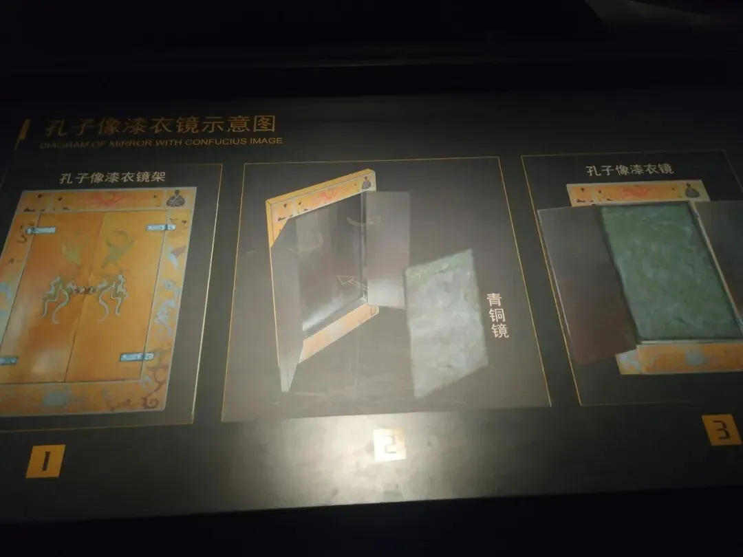 孔子像漆衣镜,是我国现存最早的孔子形象实物,堪称“儒家文化第一镜”。