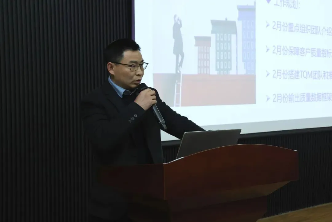 会议伊始,由品质部部门长廖老师进行开场发言。面对当前严峻的市场形势,廖经理一针见血地指出:“我们必须将思想统一到同一个高度。质量不仅仅是检验出来的,更是我们主动出击、主动改善出来的。在如今的‘寒冬’中,质量就是企业的生命线。我们要用数据说话,用数据展示成果,让每一个决策都有据可依,让每一次改善都落到实处。”