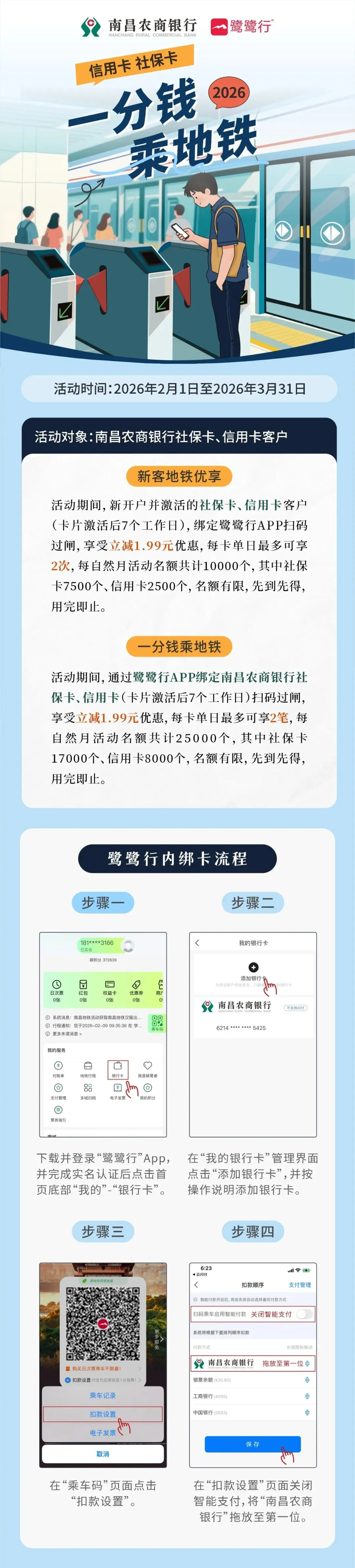 >省钱攻略!南昌农商行专属福利:1分钱乘地铁+新客优享,畅行无压力!