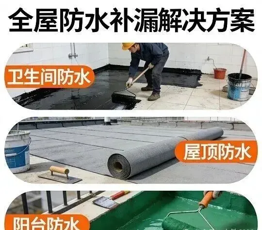 核心材料:高分子防水涂料、防水卷材、堵漏灵、结构胶