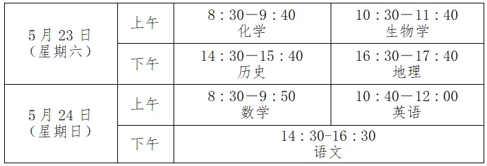 补考考生按考试安排参加对应科目合格性考试。