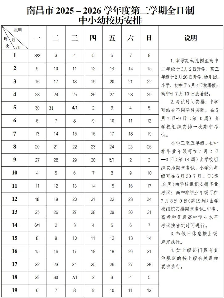 根据南昌市教育局统一校历安排: