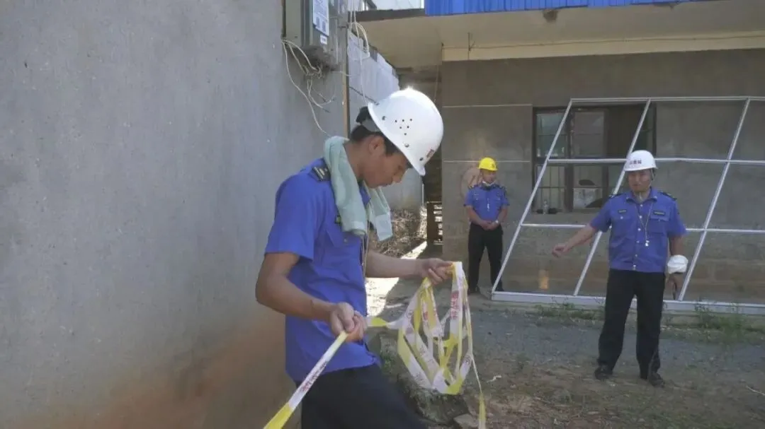 拆迁工作开始前,城管执法队员在拆除区域周围拉起了警戒线,并在各路口维持秩序,确保安全。