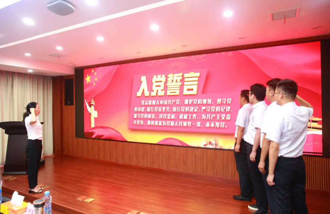 “我志愿加入中国共产党,拥护党的纲领,遵守党的章程,履行党员义务……”会上,市政公用集团派驻纪检三组组长万爱梅同志带领新入党的四名党员向党旗宣誓。