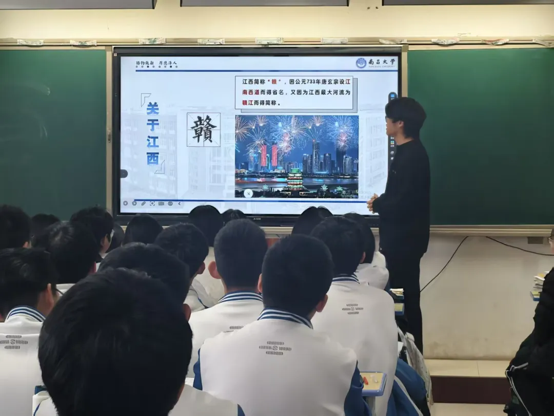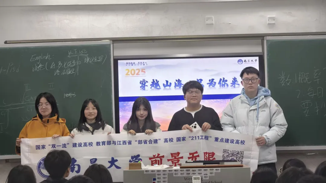 金融数学252班李聪、计算机科学与技术246班谷帆、计算机科学与技术242班徐钰琳等同学化身“形象大使”,利用寒假时间重返高中母校。他们站在熟悉的讲台上,满怀热情地向学弟学妹们介绍了南昌大学的校园风光、学科优势及丰富多彩的大学生活,并结合自身经历分享了学习方法与成长感悟。他们的到来受到了热烈欢迎,不仅激发了学弟学妹们的向学之心,也充分展现了南昌大学学子的自信与风采。