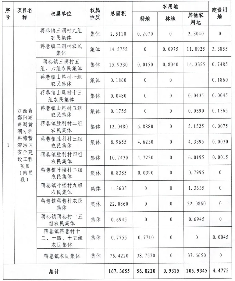 征收土地合计约167亩,规划用途为水工设施用地。征收范围为蒋巷镇三洞村、山尾村、胜利村、叶楼村、蒋巷村,具体征收范围见征地红线图。