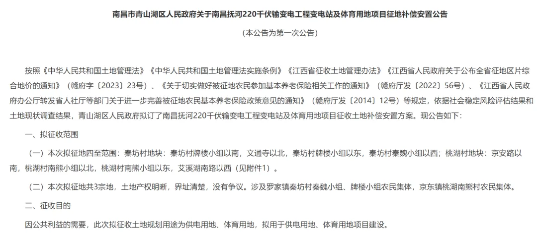 因公共利益的需要,此次拟征收土地规划用途为供电用地、体育用地,拟用于供电用地、体育用地项目建设。