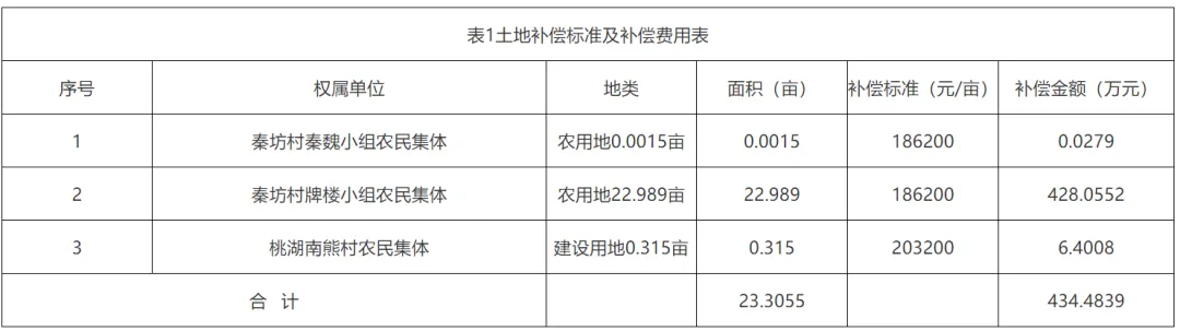 经调查确认,本次拟征地总面积23.3055亩。其中:水田16.548亩、农村道路0.006亩、坑塘水面5.9295亩、沟渠0.507亩、建设用地0.315亩;按土地权属分:秦坊村秦魏小组0.0015亩,秦坊村牌楼小组22.989亩,桃湖南熊村小组0.315亩。