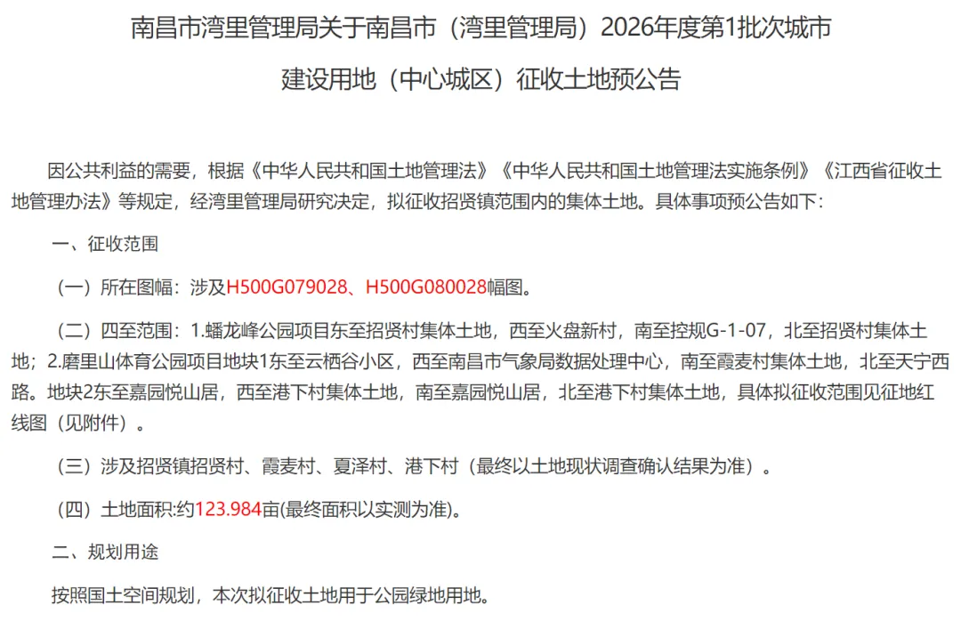 南昌市(湾里管理局)2025年度第1批次城市建设用地(中心城区)经江西省人民政府批准,于2026年2月11日取得用地批复。