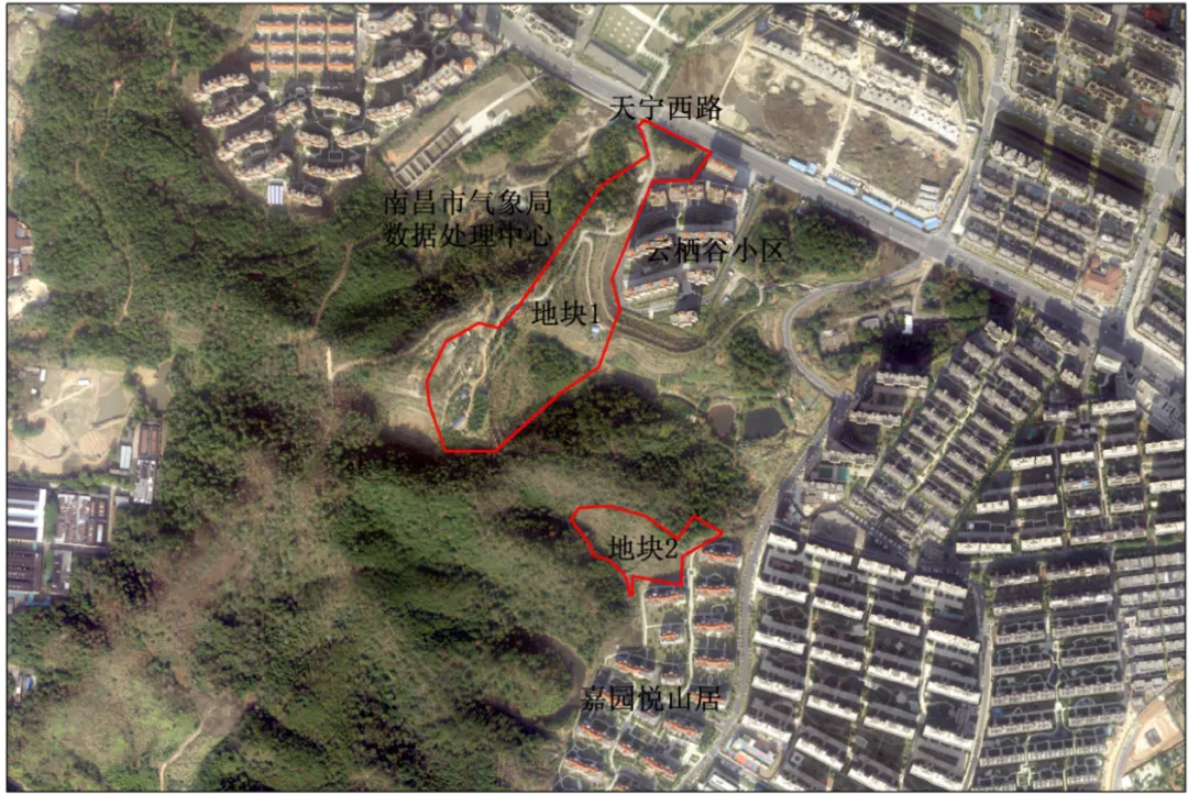 2:磨里山体育公园项目地块1东至云栖谷小区,西至南昌市气象局数据处理中心,南至霞麦村集体土地,北至天宁西路。