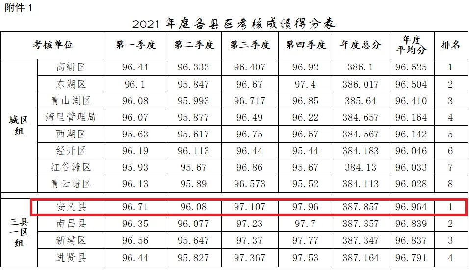 第一名 安 义 县 96.964分
