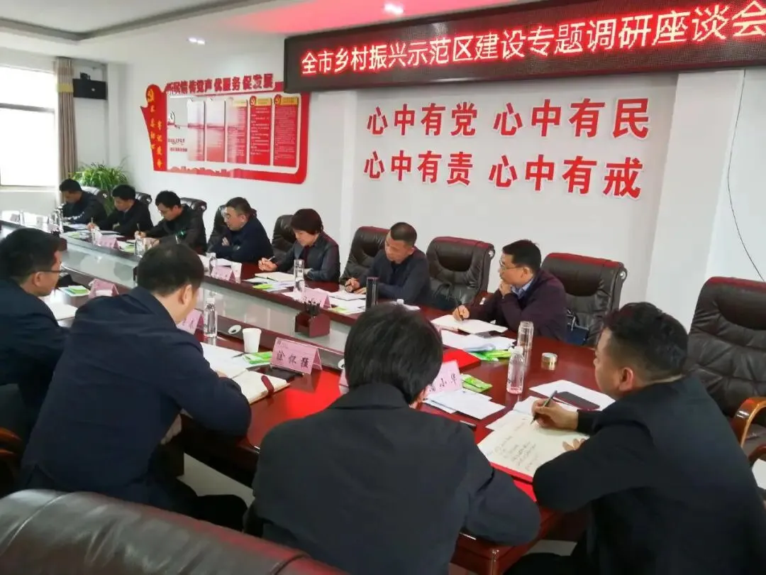 此次调研采取座谈会的形式,余建国主持会议。会上,凌永青介绍了乡村振兴示范区建设等有关情况,市农业农村局综合调研科科长勒外光、新农村建设科科长汪昌生、社会事业促进科科长王凤彪 、项目办主任凌欣分别发言,其他与会人员进行交流发言。