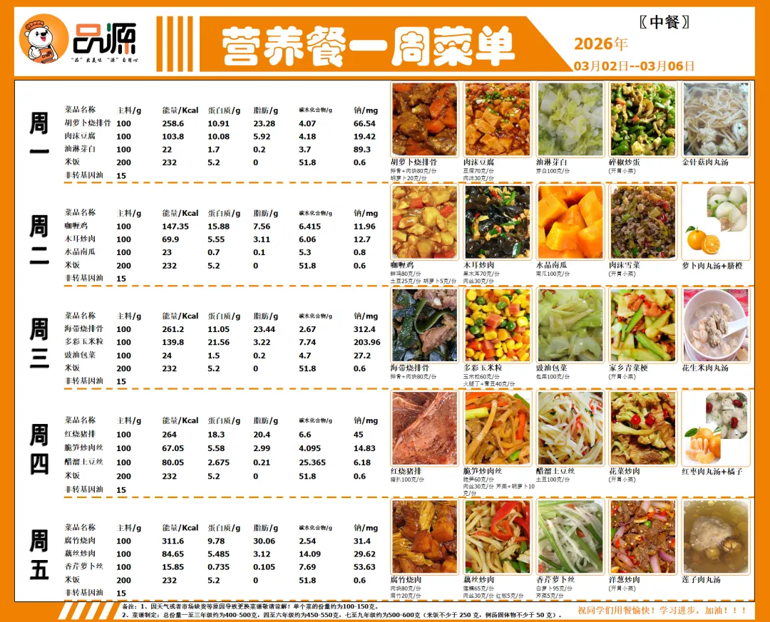 【第一周(2026年3月2日-3月6日)带量食谱公示】