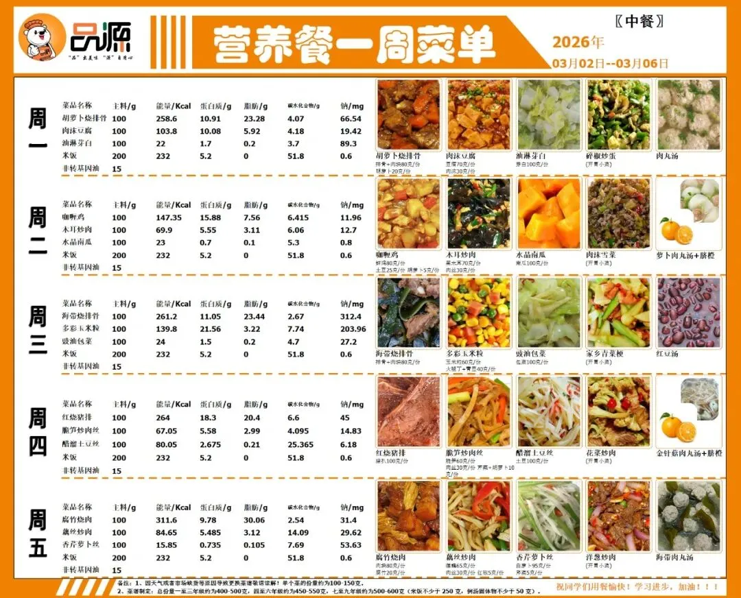 【青云教育 日新服务】南昌中学教育集团青云谱校区健康带量食谱(2026年3月2日-3月6日)